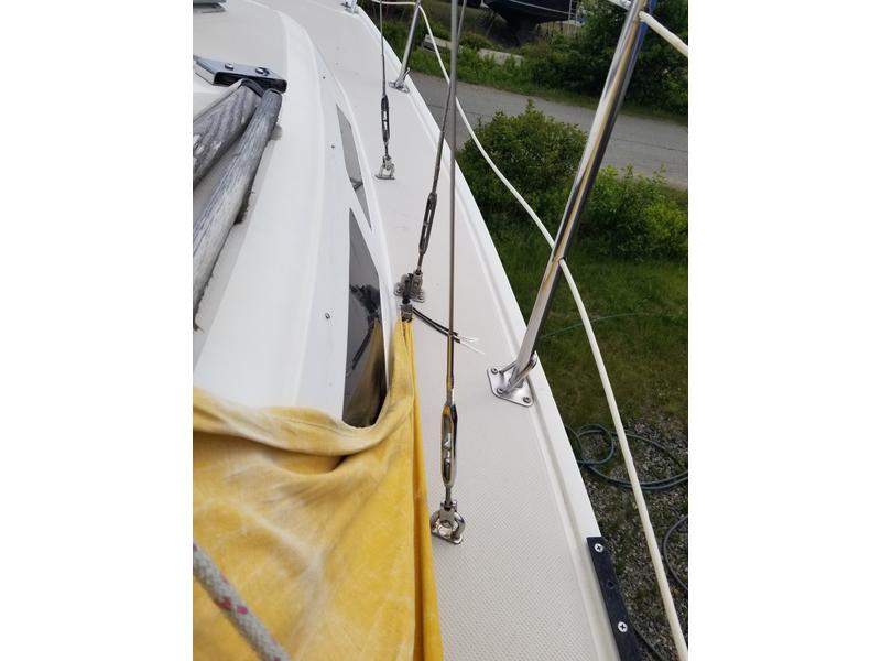 Located in Eastport, Maine, hauled out. Onboard diesel engine is UNIVERSAL M-18. Oil changed regularly; no problems. Max speed is 6 knots. All sails included and in good condition; boat sails well. New Shrouds and turnbuckles: Aft Lowers and Forward Lowers. Lights replaced on mast at top, mid, and bow and stern. Stove, radio, included in cabin. Lifejackets, cushions included. Sewage tank replaced with portapotty, included. Boat is clean and in good condition; sellers need to change boats. The boat is ready to launch for this season and learn to sail on. |