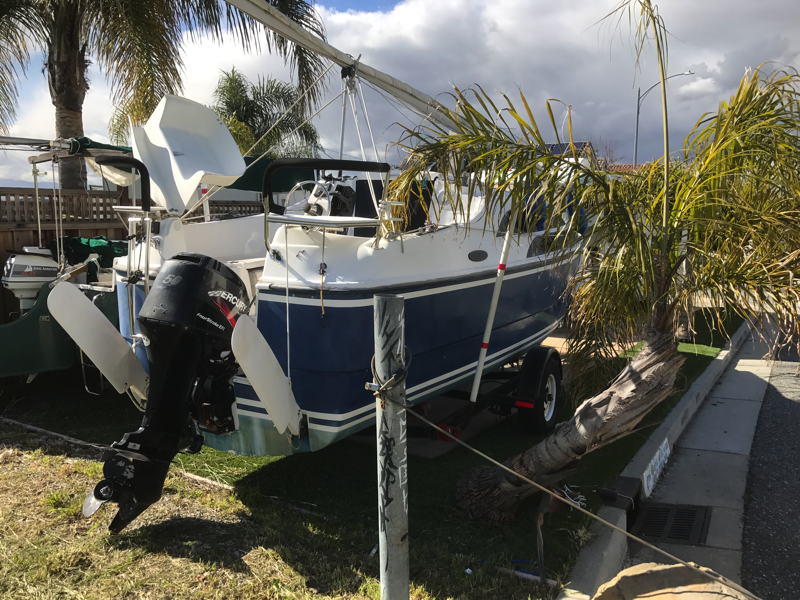 Sale includes a modern newer trailer which has been recently completed overhauled, with brand new double-weight axles, new brakes, tires, fenders, wiring, and new everything! Spare tire and tire holder added. Pretty much like a brand new trailer, except with the much better disc brakes and a much beefier axle (can take much more than twice the weight of the standard Macgregor trailer)!