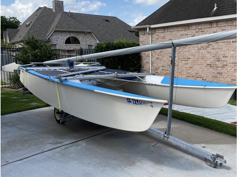 Its finally time to sell the cat after sitting in my various garages used only once since 1986. I was waiting to sail with my kids, but regrettably that never happened. So the cat is in great condition and it's ready to sail. The photos speak for themselves about the condition of the boat.