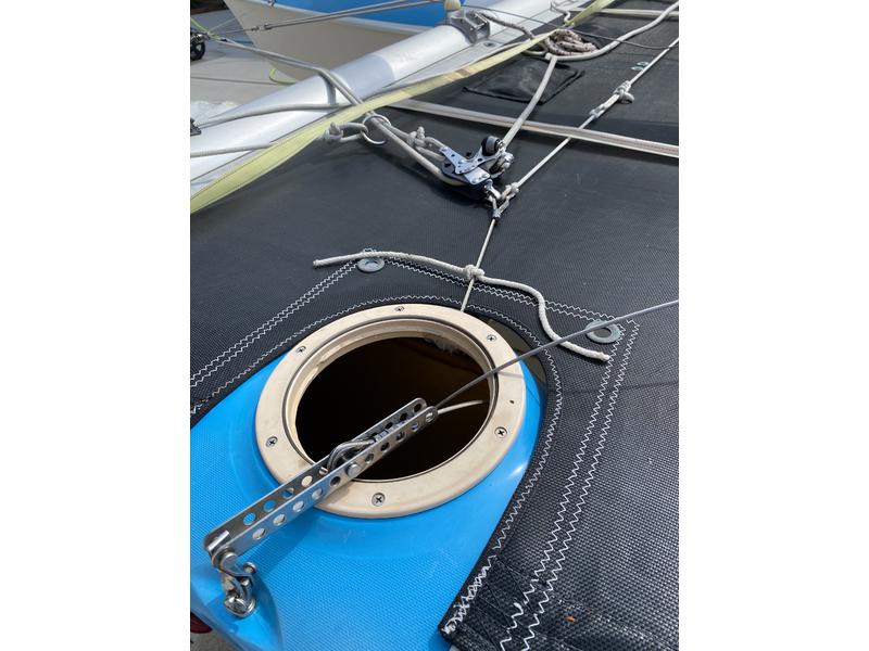 The Drydock trailer is also in excellent condition. Includes a lockable cat box for storing the rigging, life jackets, tools, etc. and a lockable cat tube.