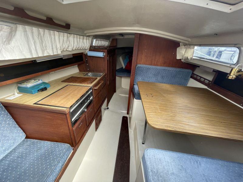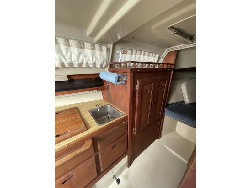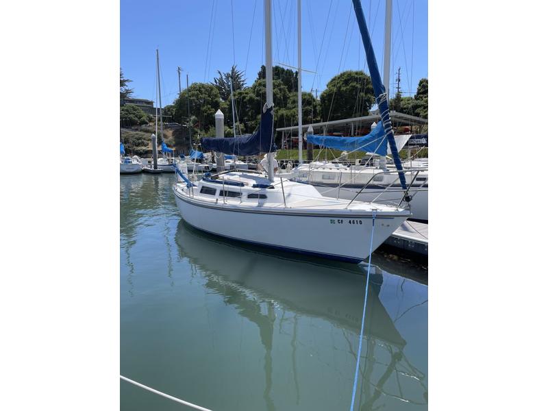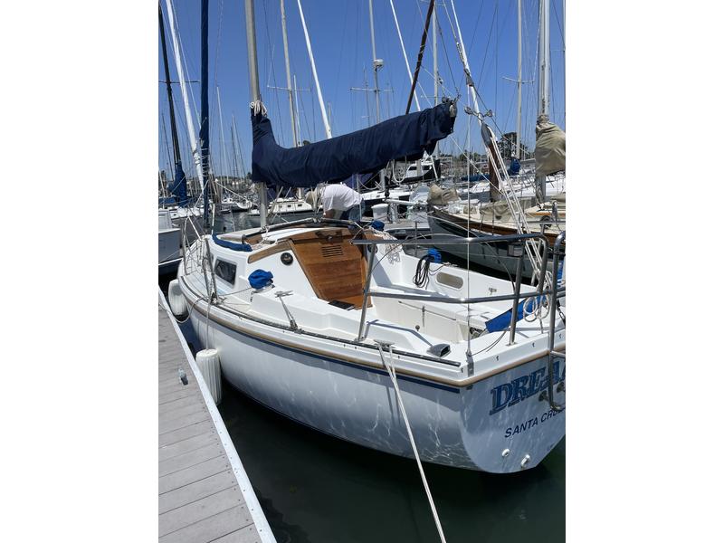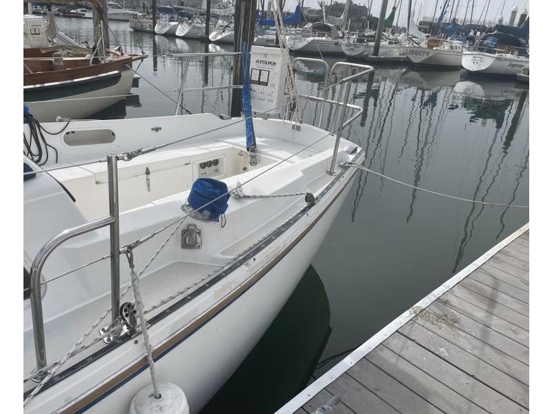 1983 Catalina 27. Interior: 2 burner stove converted to propane canister, sink, ice box, 4 person dinette. V-berth for 2, 2 quarter berths, dinette converts to double. Enclosed head with sink and toilet. Excellent cushions, woodwork. Basically a 1983 Catalina upgraded over the years with no unusual modifications. Very good shape overall. Bottom recently painted with new zinc and cutlass bearing. Buyer can sublet Santa Cruz slip for 1-2 months. |