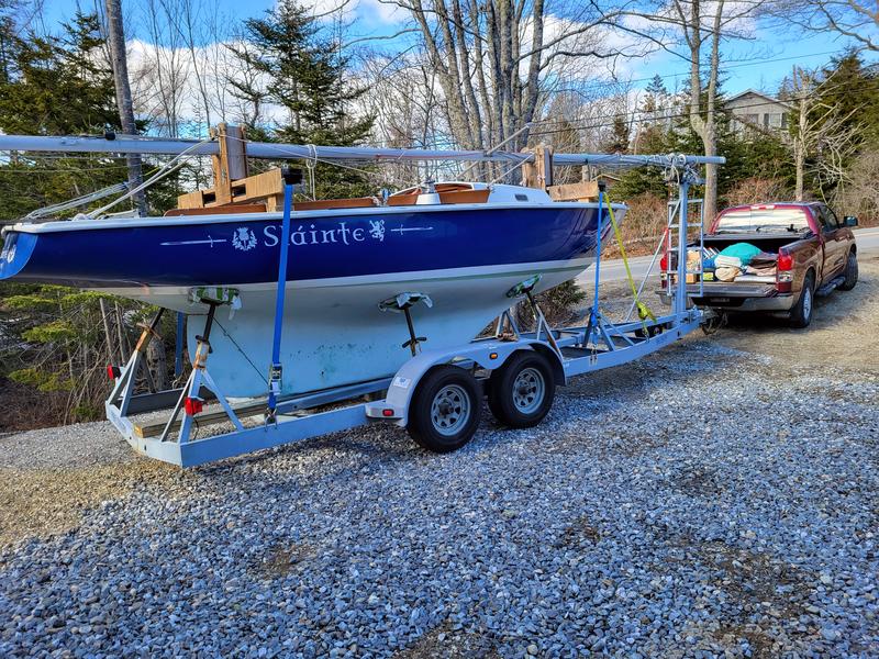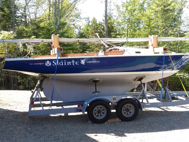 Lovely Ensign classic sloop, very large cockpit (8 feet long) can accommodate fairly large party comfortably, with excellent 2003 Triad Boat Trailer, and fairly new 2.3 horsepower long shaft, Honda outboard, North Main Sail, cruise jib with roller fuller, North spinnaker, summer canvas cockpit cover, twevel volt battery solar charged, automatic bailer on battery power, portapotty, assorted other items, |