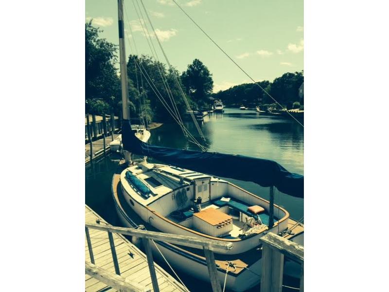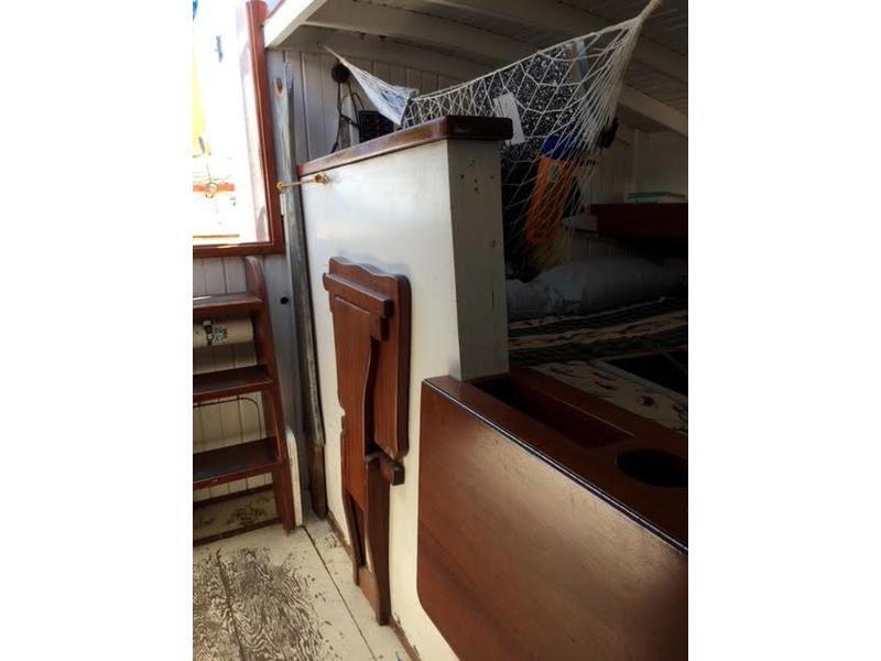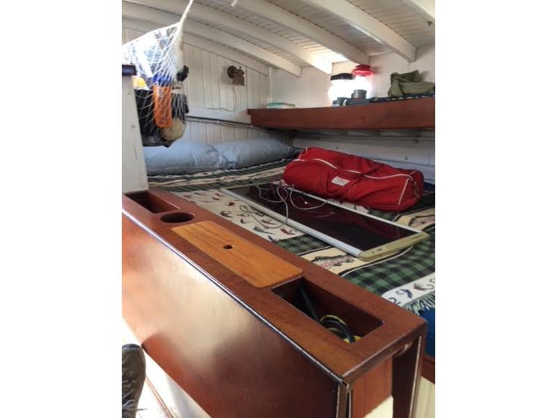 Rebuild begun in 1989, completed in 1999, about 15% of boat is original, including original wheel, other hardware, extremely wide planks in centerboard trunk and garboards.