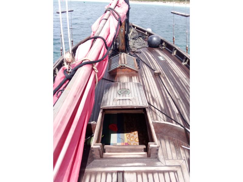 Flush teak deck with 3 lewmar 44 bronze winches 2 anchors with 25 and 90 m of chain manual windlass lofran royal The hull is very resistant oak with huge frames and The hull boards are made of iroko and 3.5 cm pitch pine