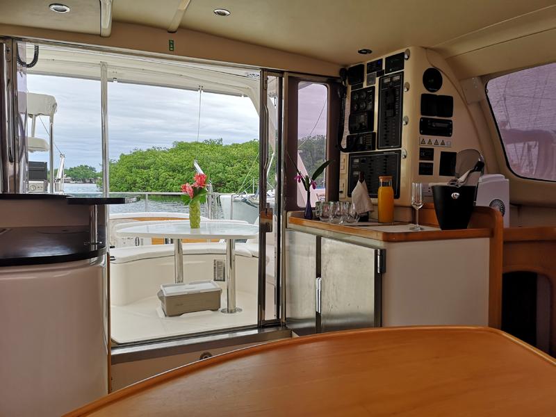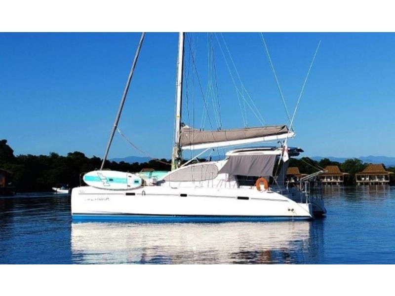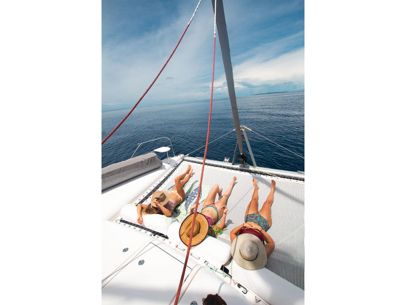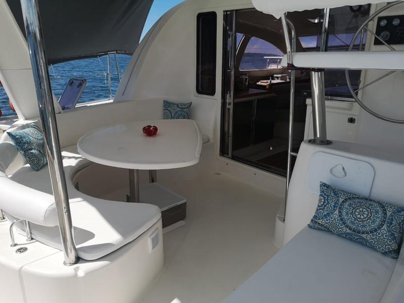 Best Boat 2005 Sailing Magazine Best Multihull 40 and under Cruising world The boat has had three owners in the past and spent most of its life off the coast of Southern Africa. The original owner is a naval architect and worked with Robertson and Caine to improve a few flaws on the vessel. One of the biggest improvements is the mainsail arch that changed from three pieces to a solid arch that is now also found in all the later models. Another improvement was enlarging the rudders that significantly improved sailing upwind. The second owner was an avid fisherman and made a few of his own modifications. The large fiberglass davits were removed and replaced with 316 stainless tube davits connected to a new pushpit. The transom steps have been enclosed by semi-permanent boxes that are set up as live bait boxes with a gate, enlarging the cockpit area and improving safety while fishing and/or sailing. |