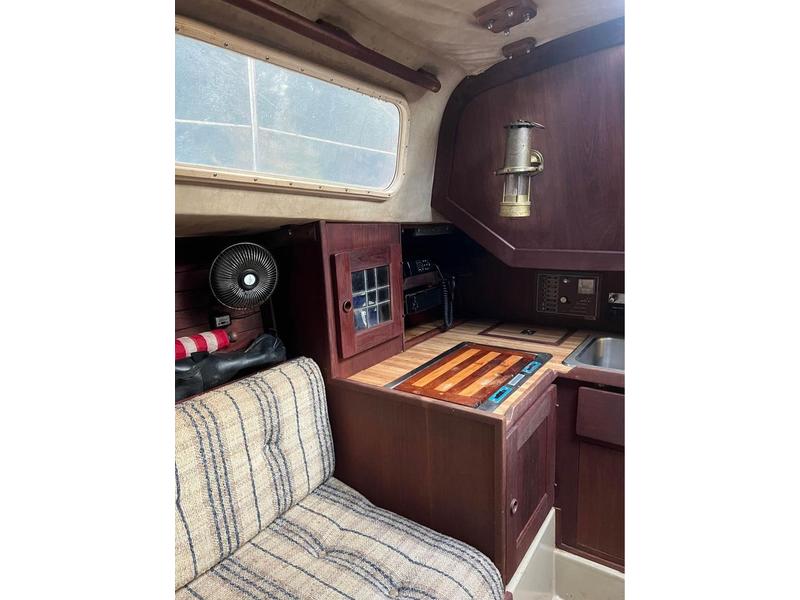 20HP universal diesel engine, 170, 145 and 100 jib/Genua. New sheets and heavy duty travel. Winches are tailing. Spare tiller. Auto Pilot. Alcohol stove. |