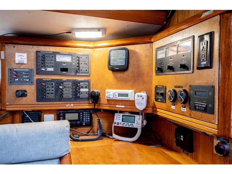 Yanmar 4hj3 56 hp approx hours 5000 B&G Autopilot,Speed, depth,wind Radar,B&G 4G ALL thru-hulls replaced in 2020 Bottom painted 2021 Standing rigging 11 years old jib 2013, main 2015, spinnaker 2014 and storm jib (one used main). Water Tanks:(2) 116 gals total Fuel Tanks 54 gals ( jerry cans) Rutland Wind-charger generator WIND/SOLAR Hybrid system controller Nature power 165 w solar panels Nature power 30A solar charge controller (2)Goiot deck vents and opening ports, Hella 12v fans Steering wheel'Tiller (2) Goiot 25"steering wheels w/leather rim cover. Bilge pump(s) manuel WHALE in cockpit 1 Jabsco diaphragm float switch 1 Habsco diaphragm manualswitch 1 High water alarm with 100DB alarm Portable water pressure WEST MARINE 60 PSI w/accumulator |