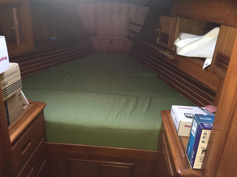 New 2016.-Raymarine i70 Multifunction Instrument Speed, Depth, and Wind New 2016- Raymarine RD418HD 4kW HD Digital Radome New 2016- Icom IC-M802 SSB Marine Radio / Auto-Antenna Tuner Package New 2016- Raymarine e7 HybridTouch Multifunction Navigation Display New 2016- Raymarine tiller pilot autopilot. Still unused. New 2016- Schaefer Large Lazy Jack Kit New 2016- Lewmar No. 7 Ocean Series Standard Winch x 2 added to boom New 2016- Antal Cam 611 Horizontal Rope Clutch with Flat Cam x 2 added to boom New 2016- Antal V-Grip 10 Series Rope Clutch Double (8-10-12 mm Lines) x 2 added to cabin top New 2016- Sarca Excel #5 New 2016- Selden Bowsprit New 2016- Selden CX Furler for Code Zeros, Screechers, StaySails New 2017- 6 Memory foam mattress in V-Birth New 2017- Monitor Windvane New 2017- All running rigging replaced New 2017- Main sail cover New 2017- Bimini and hatch covers New 2017- C-Head composting toilet New 2017- All interior lighting fixtures replaced with LED New 2017- All stancions And Lifelines replaced New 2017- Added 4 Heavy Duty stainless steel deck cleats on bow and midships. New 2017- Added masthead crane New 2017- MarineDeck 2000 cork composite deck system. New 2017- Raymarine I-70 Wind/depth/speed instrument and masthead sender New 2017- All through hulls and seacocks except bilge and scupper outlets. New 2017- All new 316SS chainplates and through deck hardware New 2017- 350 watts Solar and Silent Wind wind generator with E-Marine controls New 2018- New Raycore dual filter system with new plumbing and tank selectors New-2018- New YanMar raw water pump New 2018- New YanMar fuel lift pump New 2019- All new LED NAV/anchor/steaming/deck and masthead lighting New 2019- Refurbished, stripped, corrosion treated and painted mast and boom with Awl Grip New 2019- Replaced mast step with G-10 and phenolic composites New 2019- New Lexco cable standing rigging with Sta-Loc hardware New 2019- Pineapple Sails 90% Jib with high foot |