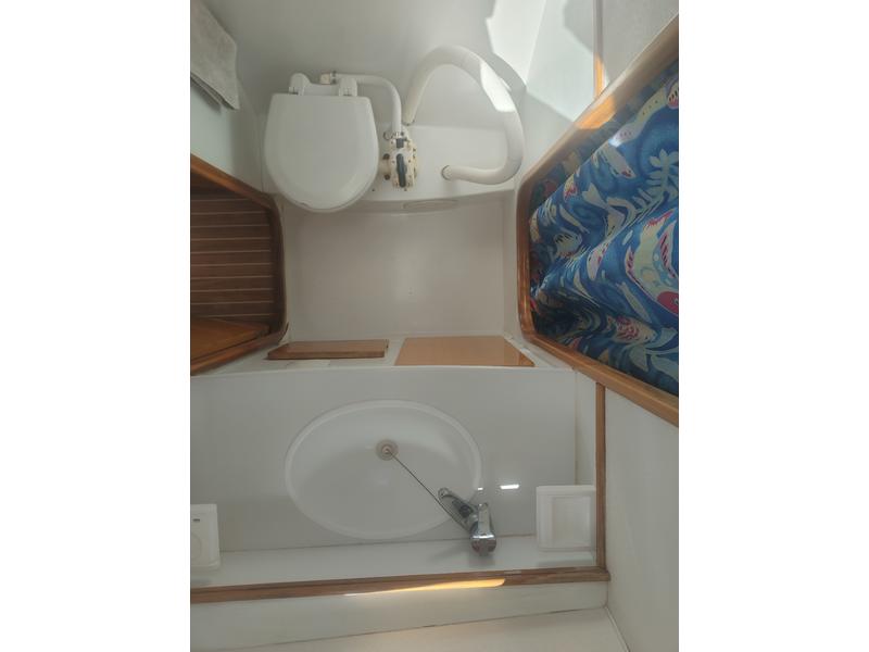 Starboard forward is a shower with intragal tub and seperate Jabsco hand pump head compartment with hand basin There are plenty of hatches and opening ports