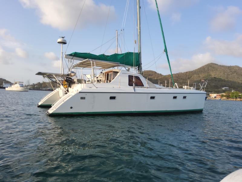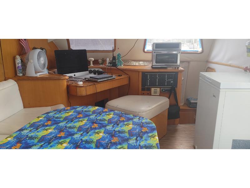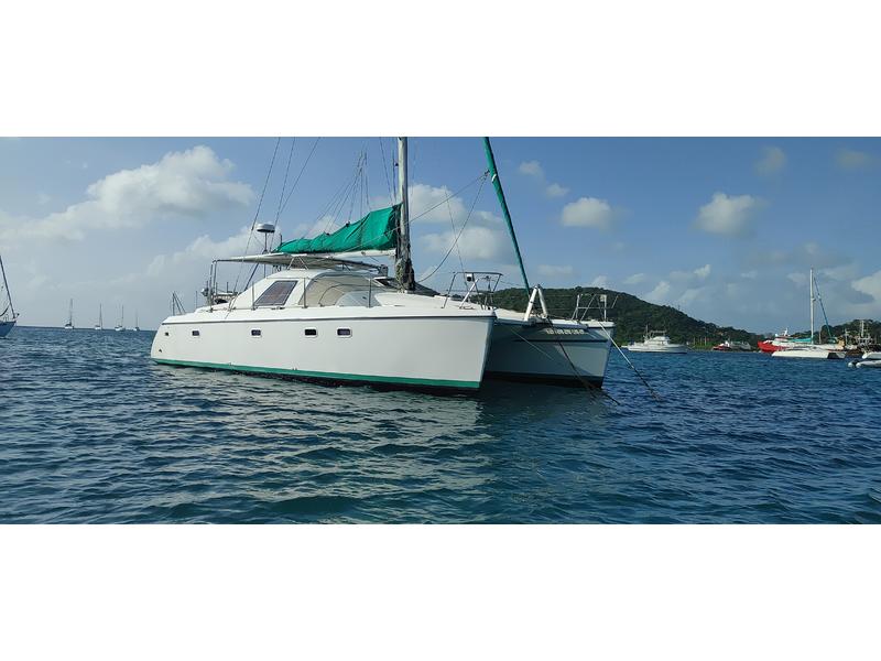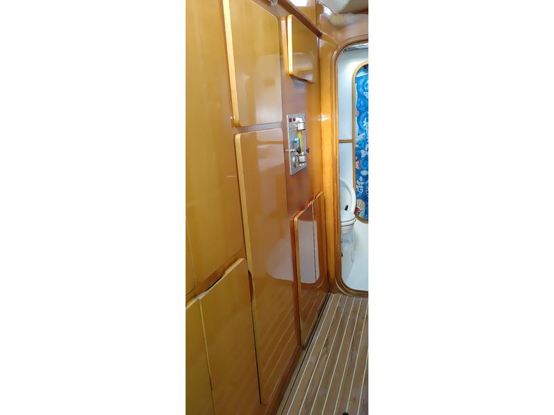 features Spacious cockpit and living area Good bridge deck clearance Capable of 150nm day runs Sails upwind well Protected steering position Port bulkhead Watermaker 20 gall/hr Westabeak diesel generator New antifouling applied mid September 2023. The hull is glass RP with a PVC foam core as is coach roof and bulkheads This boat is very well equipped for cruising and or living aboard. Air conditioning 1X 18,000btu 3X 6,000btu