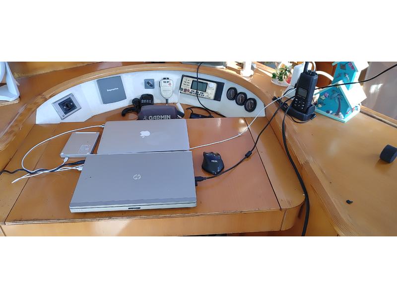 Navigation & communication Rymarine Evolution ACU- 200 Autopilot Raymarine eS78 multifunction display Quantum WiFi Radar Depth/Speed/Log Raymarine ST60 TriData Wind speed and angle ST60 Standard Horizon STVX2200W Matrix AIS VHF Standard Horizon Hx380 hand held VHF