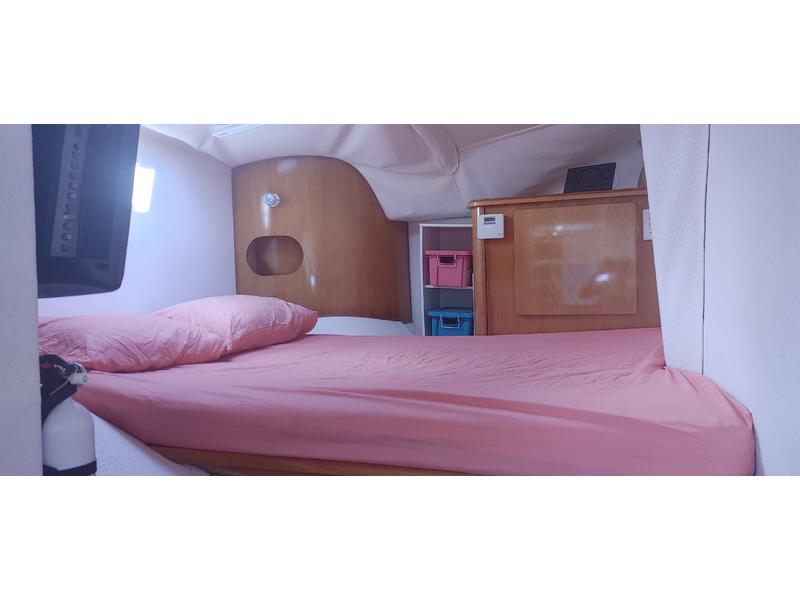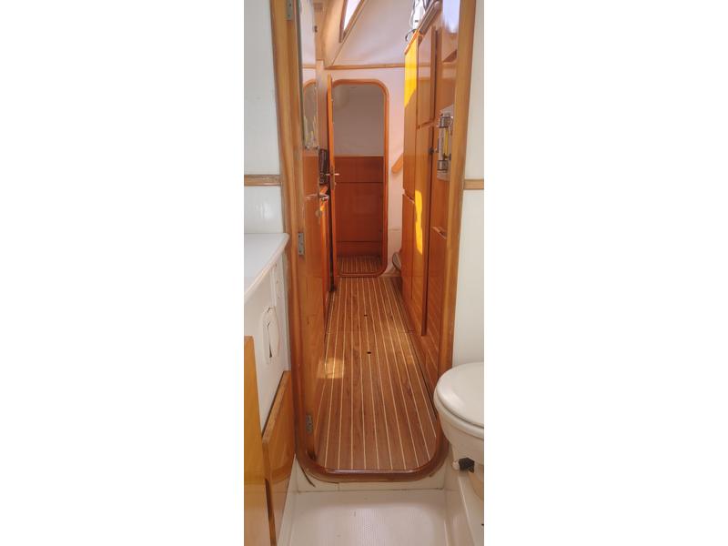 Sails and Rigging Fully battened mainsail with three reefs Genoa with a Profurl furler new bearings 2021 Has an inner stay for mounting a storm jib Small Asmetric spinnaker sail with lines Lewmar winches in cockpit 44 (3X) At mast 44 halyard and 40 topping lift Lewmar tracks and sheet cars Lewmar mainsheet traveler