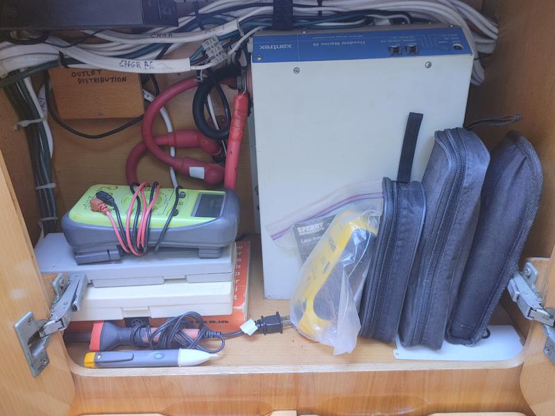 Electrics Solar panels Q cell mono 2 units 300 watt ea Solar panels REC poly 2 units 350 watt ea Solar controler EPEVER MPPT 80watt MT50 Solar controler EPEVER MPPT 50watt MT50 The solar system is split into two independent systems for optimal generation and backup. BlueSea electrical breaker panel. Battery charger Pro Marine ProSport 20 20A Zantrex Freedom Marine 30, 3,000 watt inverter charger Westabeak 5.0BDC-60HZ 110volt diesel generator Serviced May 2024 BlueSea 120 volt distributor panel with 5 outlets 30a AC shore power system and 40ft cable Most interior lights are LED Each engine has its own starter battery for peace of mind.