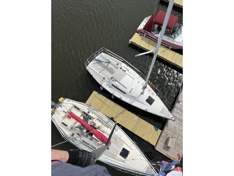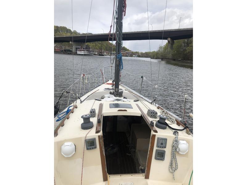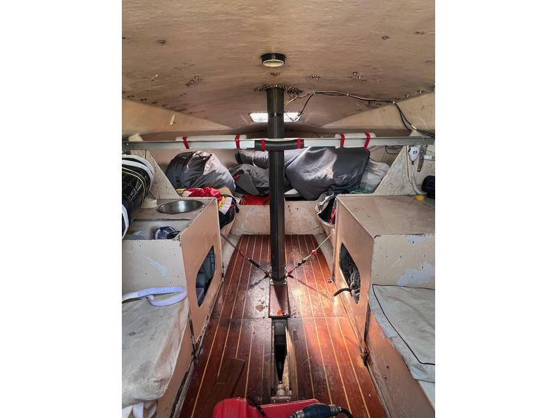 Hull number 79. Full suit of sails. New Doyle Main. Zsail #3 in good condition. Small Doyle #1 (for phrf reasons) In good working order. .5 and ,75 oversized spinakers and an Asym. There is a Beam of density and jock straps. Could use some care in dowm below but there is new Petit Black Widdow bottom paint. I stripped and did a complete bottom job 3 or 4 years ago. the top sides I did last spring. There is not a trailer. More pictures available upon request.