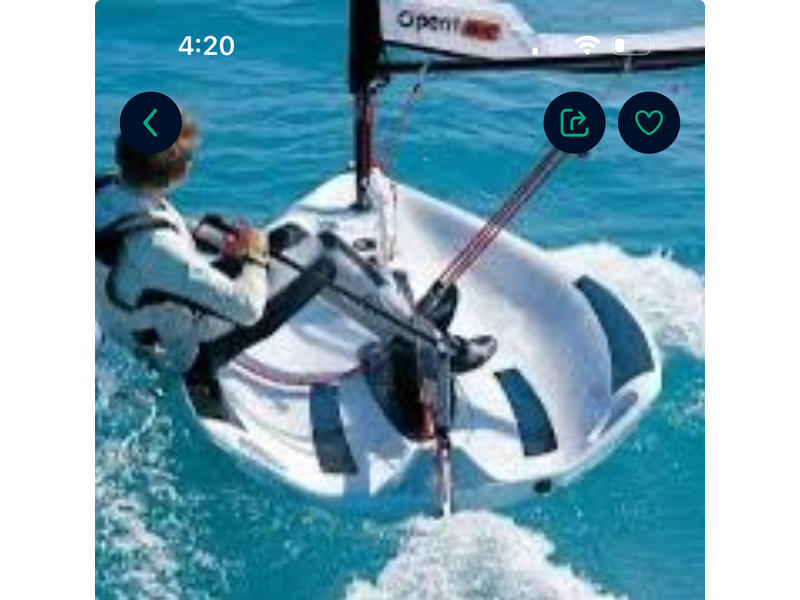 The O'PEN Skiff is a single-handed training and racing. The design is widely used by hundreds of sailing clubs for training children to sail. World Champion New Zealand sailor and Americas Cup Winner, said of the design, "the Open Skiff is a fantastic boat for young sailors to experience the joy of sailing. It is fast, exciting and fun to sail yet simple to rig and maintain. Many of the skills learnt in the Open Skiff will be easily transferred to other boats as sailors evolve and progress onto other forms of sailing." Perfect boat to have of lots fun and learn to sail safely.It can be transported on the top of the car. The boat is in excellent conditions.