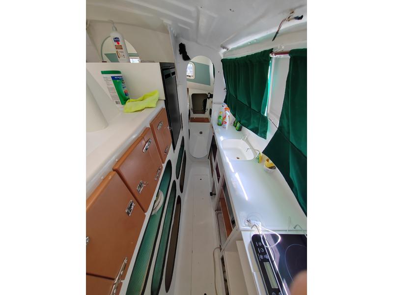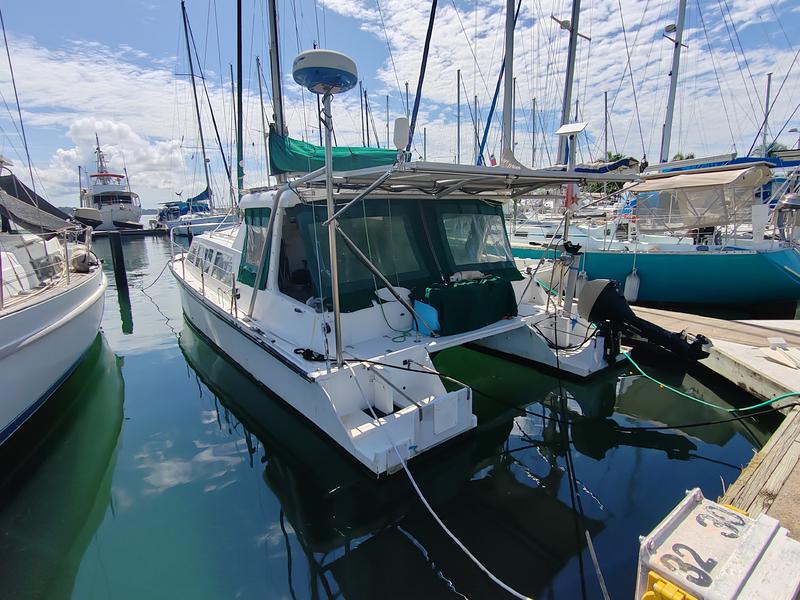 Location: Bocas Del Toro, Panama Asking: $35,000 (USD) S/V El Marinero is a 1982 Catalac 8M catamaran, for sale by owner. She comes with 33" hull extensions/swim platforms/motor mounts 2x 9.9hp Suzuki. Electric propulsion, hard dodger allowing complete cockpit enclosure with AC. Lithium batteries. 5.000 and 12.000 BTU portable AC. The Catalac 8M is a pocket cruising catamaran which has a solid reputation for quality, strength and durability. Although classified as a pocket cruiser, the 8M was designed with blue water sailing in mind. Twin diesel models can easily motor almost 1000 kilometers without refueling. Constructed with solid fiberglass hulls, these are quality boats which were built like battleships. |