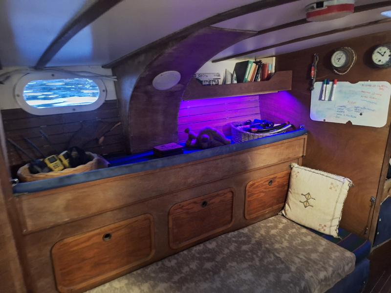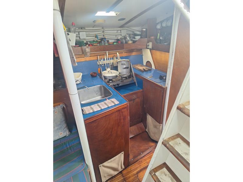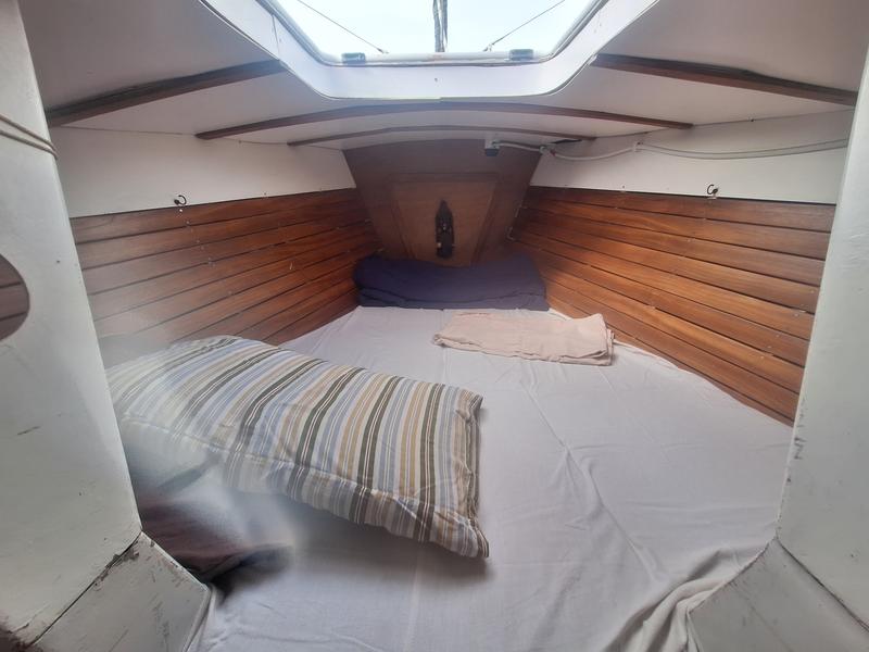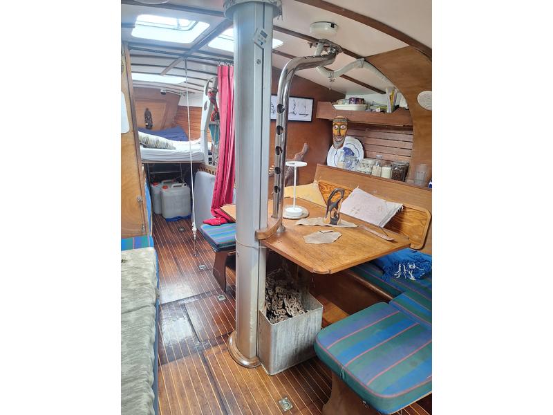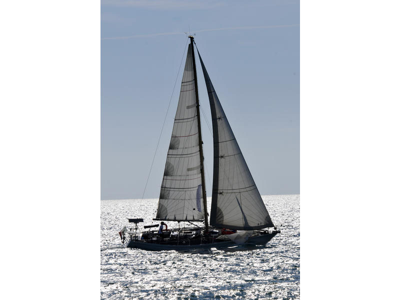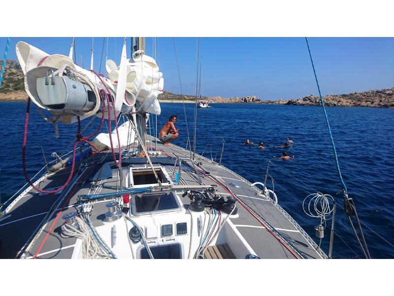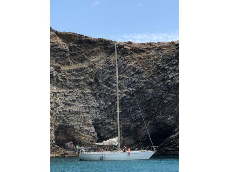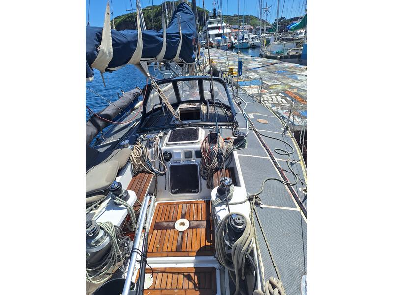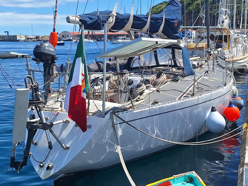 Douglas Peterson built in Italy for racing offshore in the med, than transformed in cuiser in 1988. Just arrived in Lisbon from Azores and currently in drydock ready to take off again