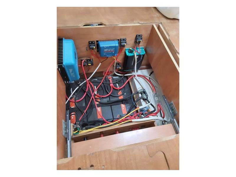ELECTRICAL 3 bi facial solar panels 330 watts with solar arch (2020) 3 Renorgy 17watts flexible solar panels (2022) 2 new engine batteries 640/800 cranking amps (Nov. 2024) 3 x 300 amp Lithium batteries (Nov. 2022) Victron MPPT 150/100 (2021) 2022 victron MPPT 100/30 (Nov 2022) Victron smart shunt 500 amp (Nov 2022) Victron bluesmart IP22 12/30amp charger (Nov 2022) Electricity 220 volts original system 110 volt system installed (Nov 2022) for North American appliances/computers 2 x 2000 watt inverters (2022) 1 2000 watt spare inverter Portable Gas Yamaha 1800 watts