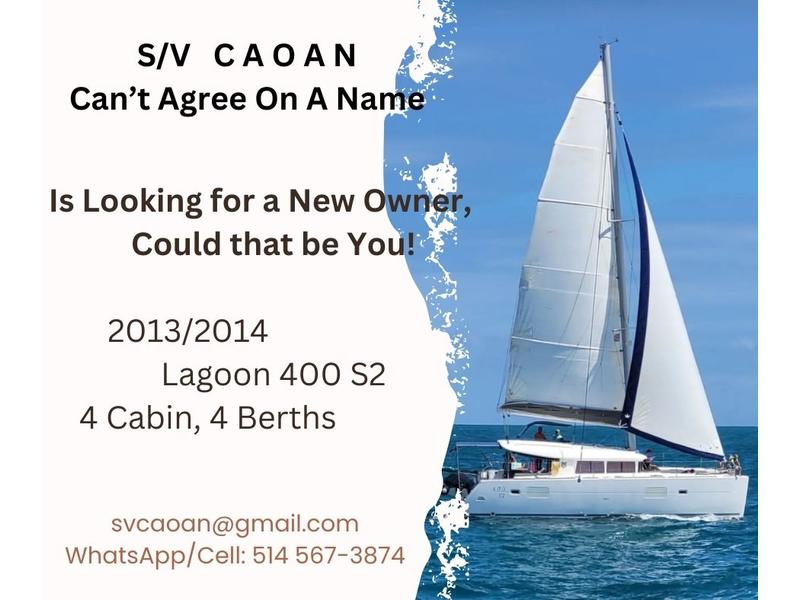400 S2 Lagoon Catamaran, 2013 launched in 2014, is very well maintained with numerous upgrades since coming out of charter in 2019. The previous owner purchased her in 2019 and we purchased it in Sept 2021. Between the two owners we have improved her condition and systems, so that CAOAN is a self-sufficient cruising boat with modern systems. After 4 years of exploring from Grenada to Bahamas and putting SV CAOAN on the hard in the Chesapeake, Virginia each hurricane season we have decided to return home for a couple years and then purchase another boat to continue our adventures.