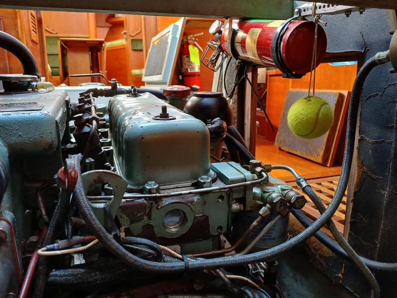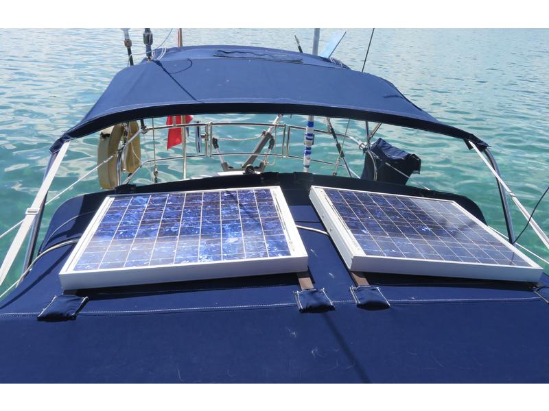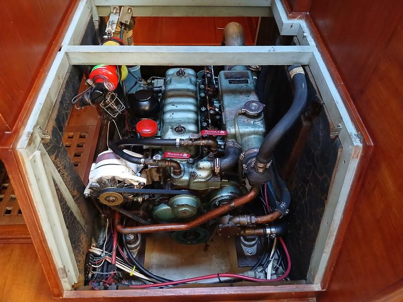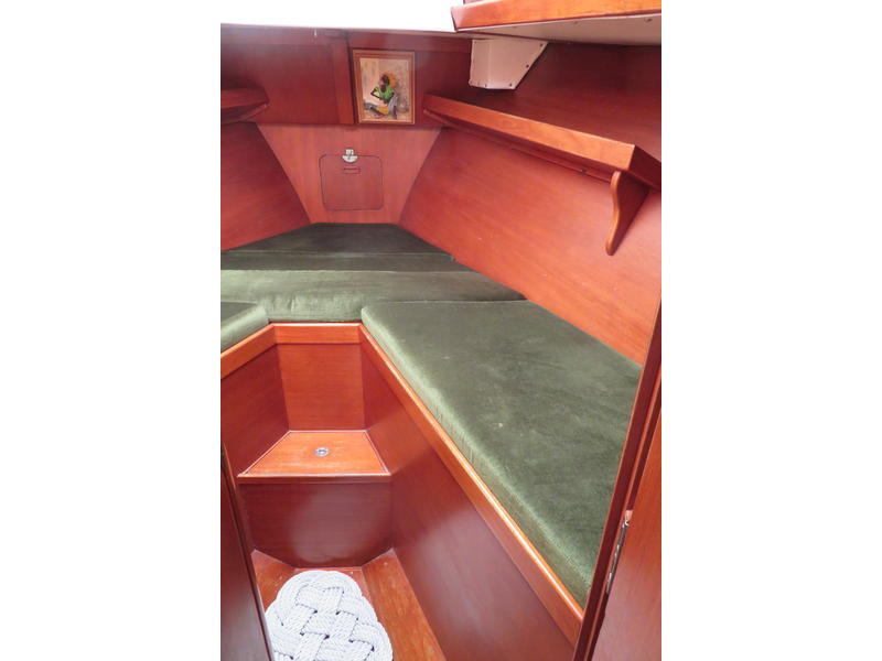 Full beam aft cabin with double bed to port, vanity, sea bunk to starboard. Engine access. Lockers and drawers. Companionway to cockpit. Saloon with U-shaped settee to port, settee to starboard. Roll out pipe cot. Large foldable teak table. Bookshelves port and starboard. Forepeak with V-berths, book shelves port and starboard. Hanging locker with shelves Galley to port with two burner propane SS stove with oven and broiler, double SS sink with hot & cold faucet plus fresh and salt water hand pump. Refrigerator Companionway with large sliding hatch to deck Blake Lavac toilet, handheld shower, teak grate Ample storage throughout the boat. Five opening ports 2 large opening hatches in forepeak and saloon 3 mushroom vents and 2 large Dorade vents Nav station starboard with large chart table Wet locker with drain to bilge Refrigerator/ icebox: Isotherm 4200 with holding plate 6 gal. Hot Water tank 2 stainless steel fresh water tank, approx. 130 gal. Sestrel Major Compass on binnacle Silva compass at nav station Engine Perkins 4-108, accessible on four sides Stainless steel fuel tank: approx. 90 gallons 100 amp alternator 20 amps Battery Charger Mast balcony Bimini top Dodgers over each companionway |