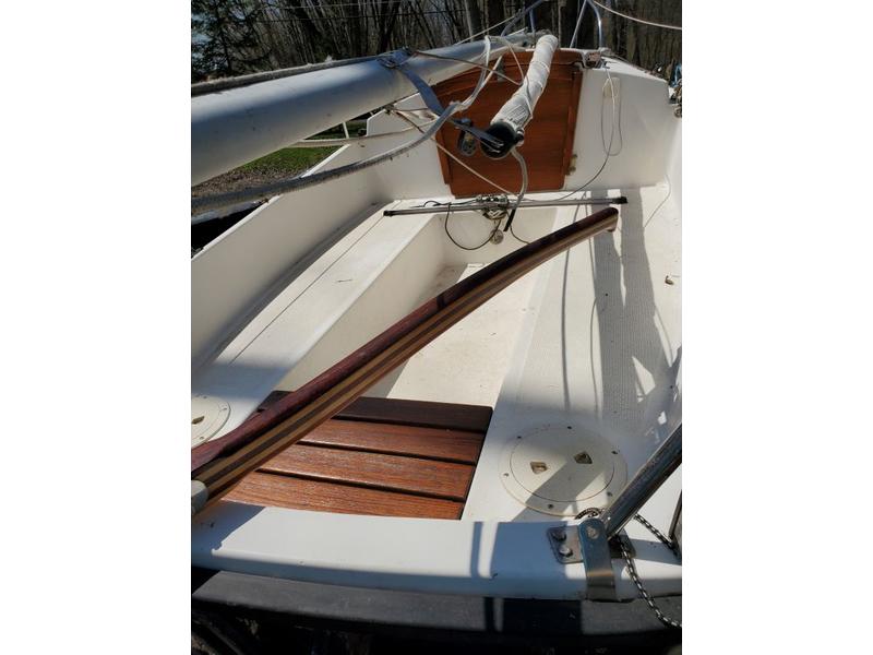 Includes:Flexible Furler, mainsheet traveler,Sailboat Mast Raising System by Underway LLC,anchor, mainsail cover, tiller cover,and homemade gin pole. I also have a Torqeedo 1006 Travel electric motor (equivalent to a 2-5 HP gas motor) which is negotiable if new owner is interested.