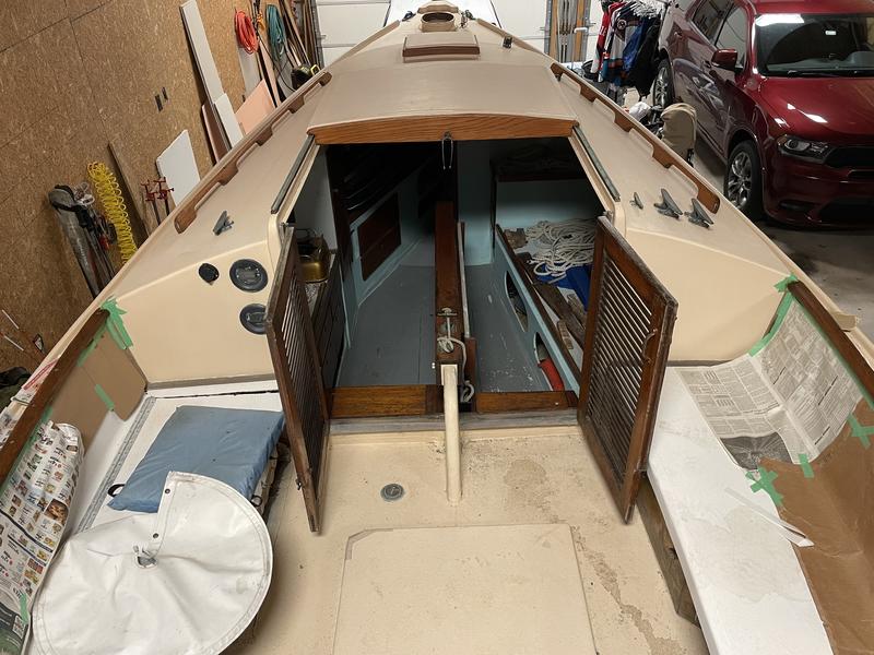 I did have the deck and cabin exterior painted by David Beaton & Sons in 2022. However, the hull has some significant scratches on the starboard side from Superstorm Sandy (no she did not sink or have any structural damage - she's build like a brick outhouse!) and port side also needs some cosmetic gelcoat repair and the entire hull really could use new paint to make her shine again. She is sound and watertight and can be launched and sailed as is, but she's worth the TLC.