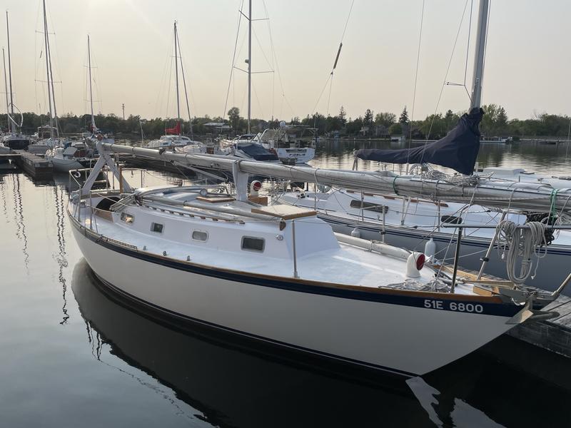 LOA: 31′ 3″ (9.53 m) Beam: 9′ 1″ (2.77 m) Draft: 3′ 3″ to 7′ (centerboard) Displacement: 8545 lbs Ballast: 4500 lbs Sail Area: 444 sq. ft. Sailing & Systems