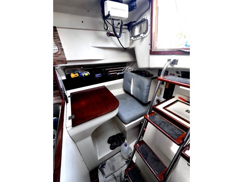 Comfortable interior: salon, galley w/ propane stove, V-berth, enclosed head