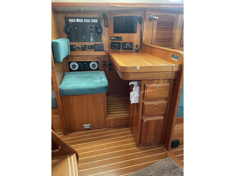 WHITE ROSE is a 2004 Deep Keel Sabre 426, known for its performance, comfort, and craftsmanship. Designed by Jim Taylor and built in Maine, she is the epitome of a performance oriented racer cruiser, ready and able to race to Hawaii or cruise to Tahiti. She has a new, robust, autopilot as well as Hydrovane wind vane steering equipment. Her rod rigging is was completely replaced in 2022. A lightweight carbon spinnaker pole supports wing on wind sailing downwind as well as a symmetrical spinnaker. A removable inner forestay supported by running backstays allows a balanced and fast sail plan in windy conditions. Sails are in good condition. She is supremely comfortable and easy to sail short handed even in strong winds and big seas.