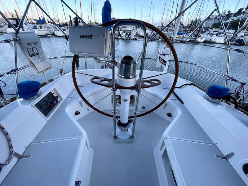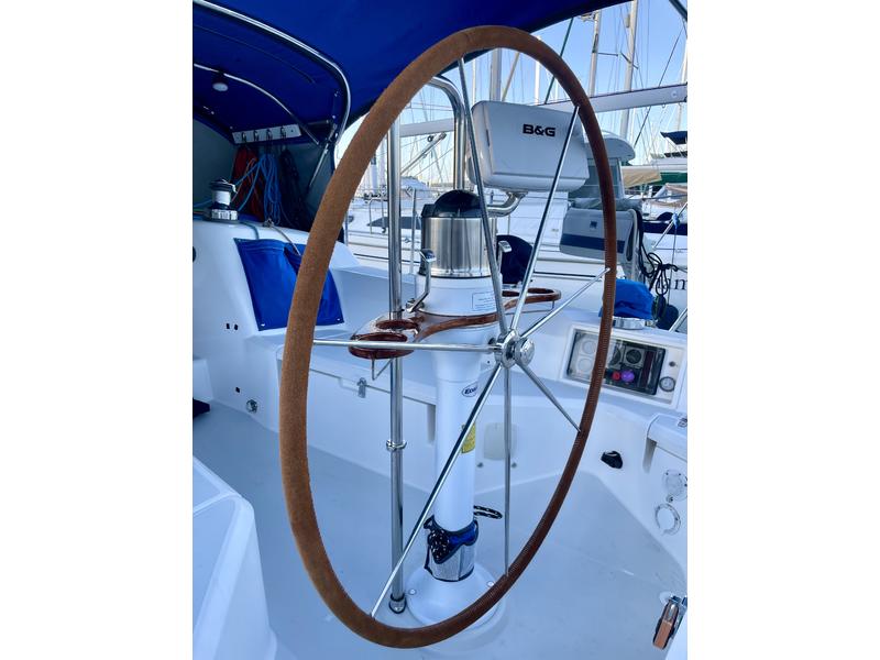 Electronics and autopilot B&G Triton Edge processor, new masthead instruments, Precision compass and DST-810 speed, depth and temperature transducer. 15 inch B&G Zeus 3s chart plotter at navigation station 9 inch B&G Zeus 3s chart plotter at the helm. 3 B&G Triton2 digital displays and autopilot controller over the companion way. NEMA 2000 barometer Vesper XB8000 AIS unit ICOM M502 VHF B&G NAC3 autopilot computer Hy-ProDrive ML 40 hydraulic autopilot actuator