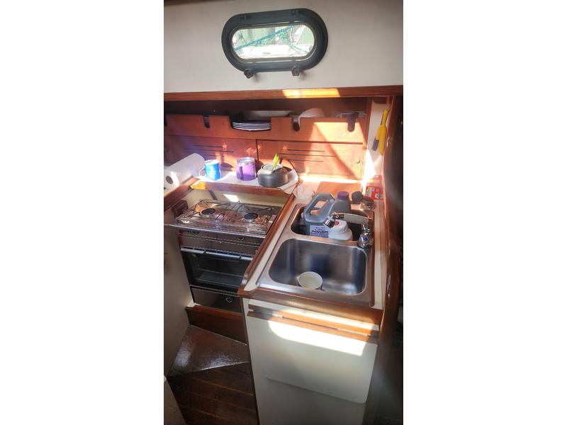 Alcohol Dorigo stove. Showers in the head and cockpit. Double stainless sink. New Garmin 10" ECHOMAP chartplotter, wind, speed and depth instruments, fully integrated with old Raymarine autopilot ST6002. New Garmin 115 VHF radio