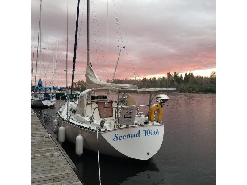 Can sleep five comfortably, has a head, two sinks, two burner stove and oven. Has 130 Genoa on roller. Other sails included are a storm jib, Drifter, and Spinaker. Boat comes with steel cradle currently docked at Loons Foot Marina which is paid up for the season. September is the best month for sailing Lake Superior as the winds are steady, and the weather is more stable. "Second Wind" points very nicely into the wind, and only needs 3 knots of wind to sail.