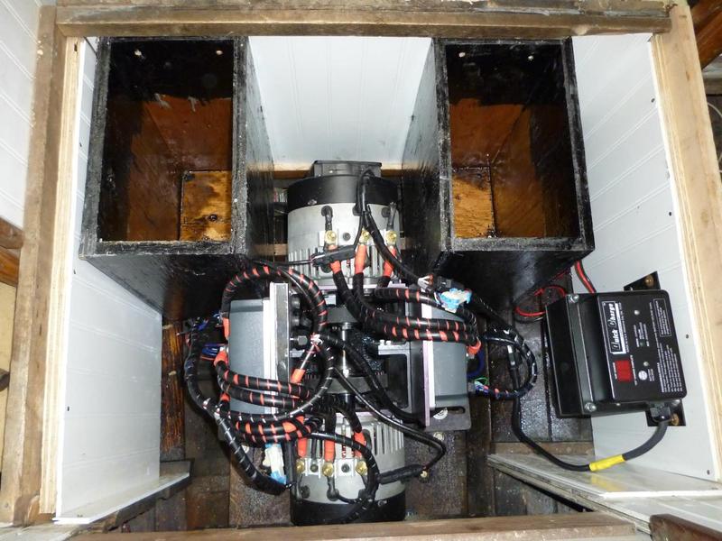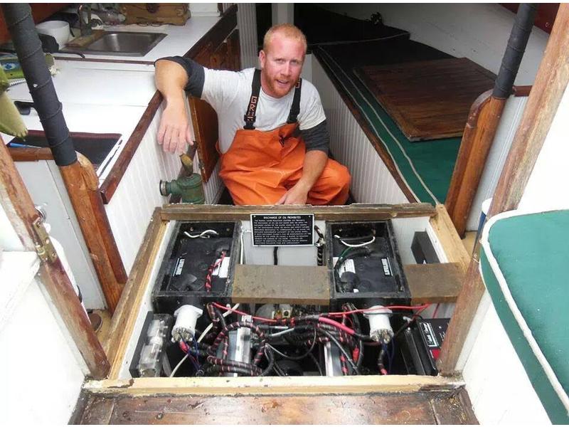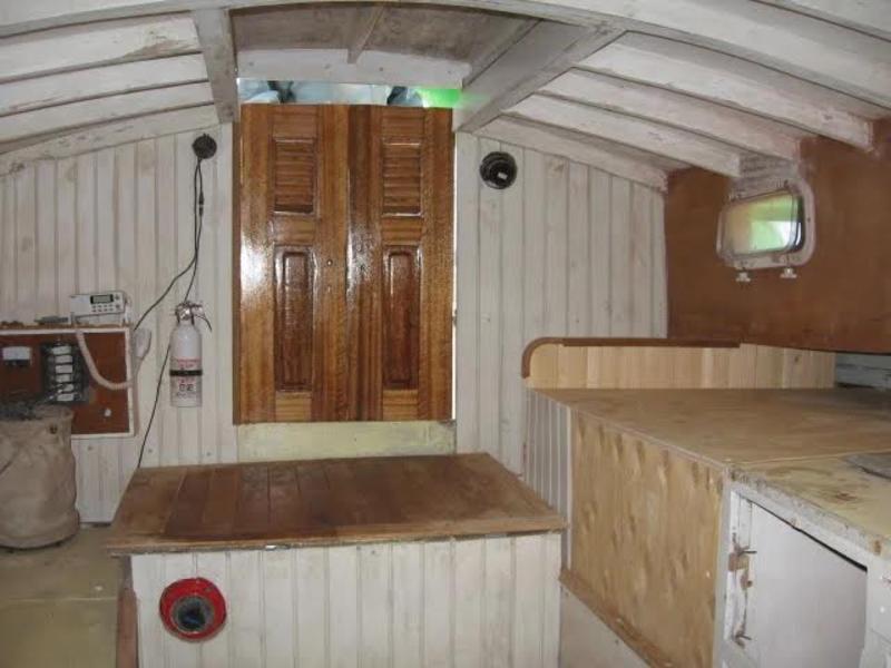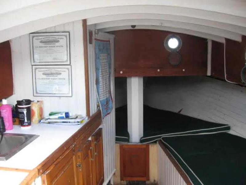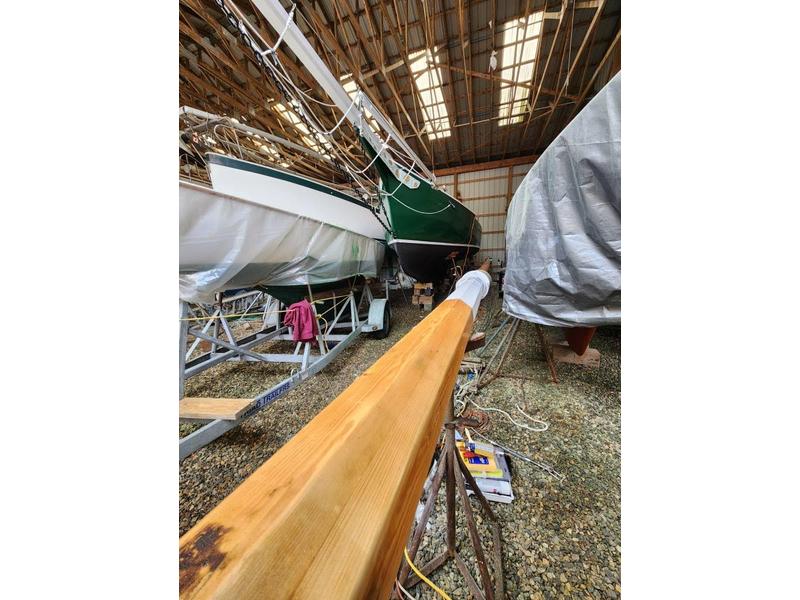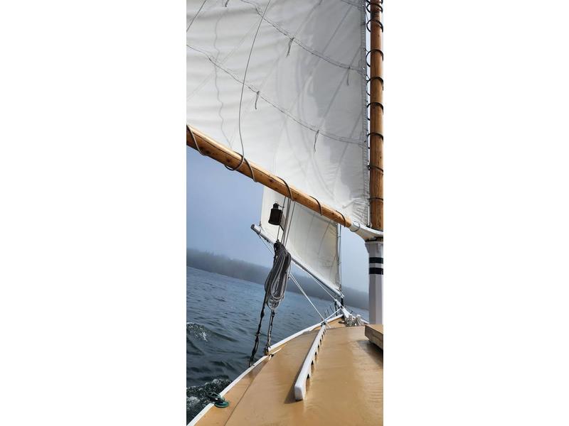 Spars: Solid spruce boom (1965), laminated spruce mast, bowsprit, gaff and club foot (2000s) Standing Rigging: Oversized stainless steel wire, wormed served and leathered where applicable, single strands around the mast hounds to turnbuckles on deck. Bronze chainplates rebedded and fastened in 2000s Galvanized chain bobstays (2025) to turnbuckles Running Rigging: Three strand dacron from 3/8 to inch depending on application. Peak, throat and staysail halyard replaced 2025, jib halyard and sheets 2006. Lazyjacks 2023. Topping lift and flag halyard 2025. Sails: All Nat Wilson Oceanus make, serviced and stored by Wilson sail loft annually. Main 2017, Staysail 2018, Jib 2019 Engine: Electric Yacht Quitetorque 20.0 48 volt system rated at 400 amp hours. Runs on eight 6 volt Lifeline AGM batteries, 2 sevcon controllers and dual electric motors with belt drives to the same drive shaft. Charges via 2 Sterling Power chargers wired to shore power outlet. System installed 2018. Electrical: Two 12 volt Rule 500gph bilge pumps, Jabsco electic head and 12 volt charging station at the panel. AC panel for Sterling power chargers and AC outlets in main salon and forward berth. Tackle: One 40 pound Danforth anchor with approximately 40 of inch three strand nylon anchor rhode. |