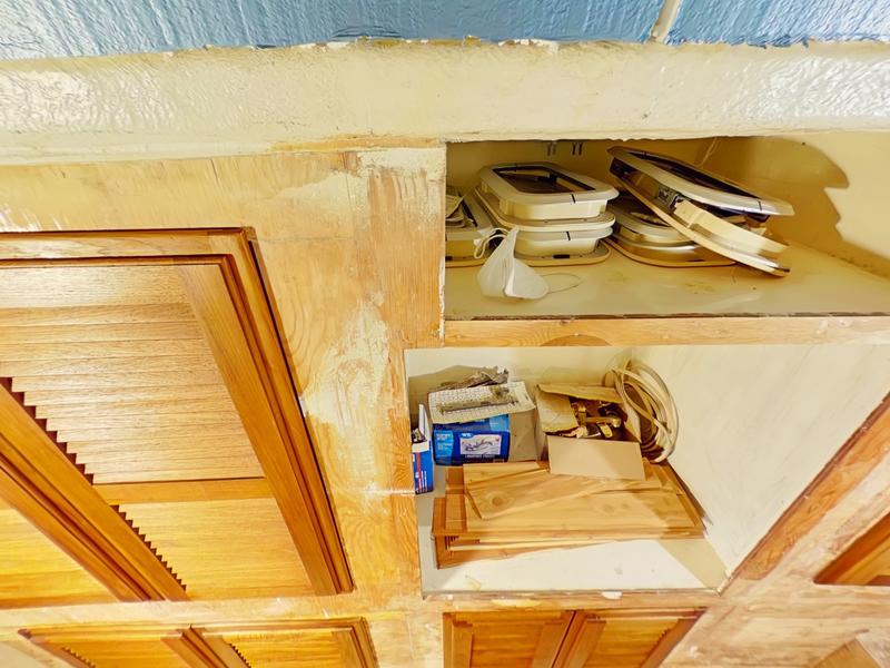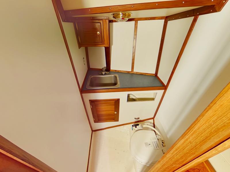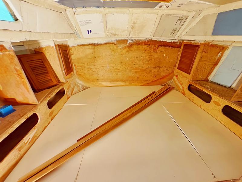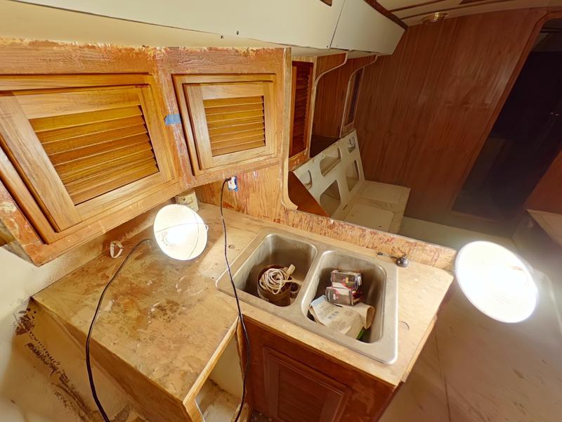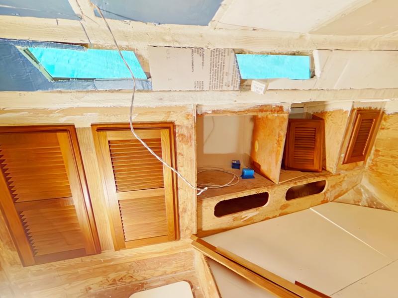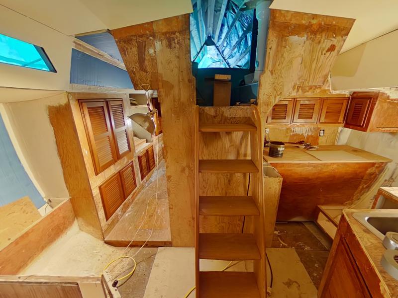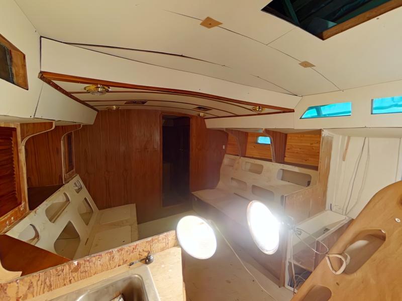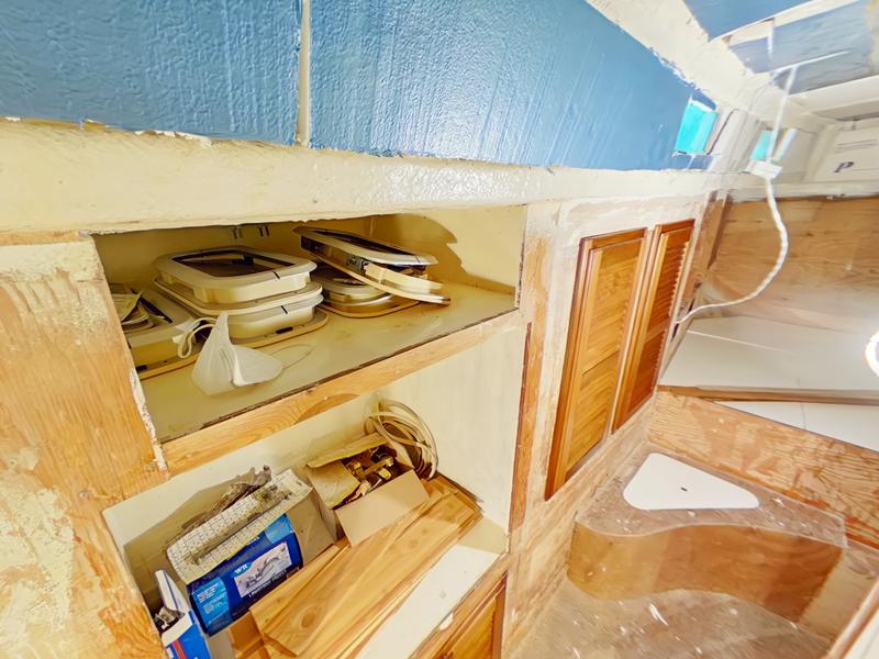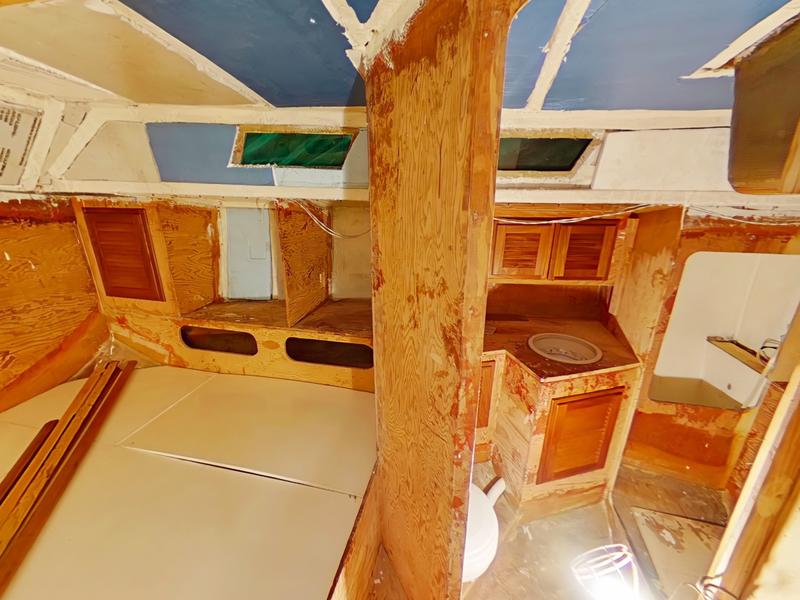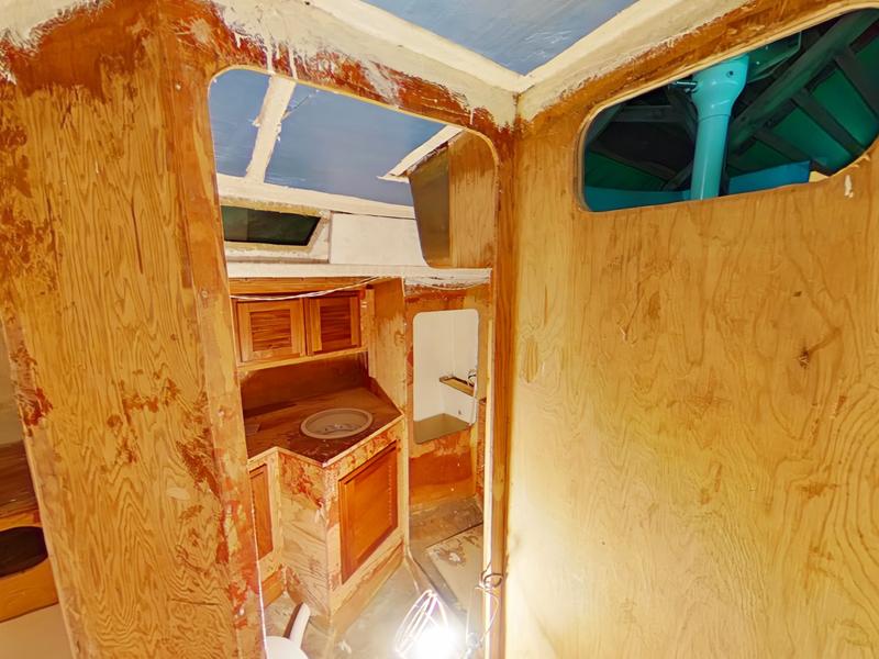 Very little glass work required; skeg needs to be finished, propeller shaft log needs to be glassed in, the rudder needs to be built and some deck repairs need to be completed. The original builder installed deck drains that leaked into the plywood deck core.