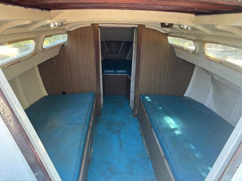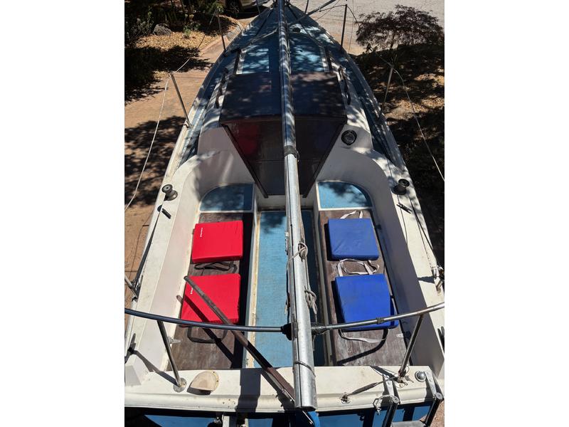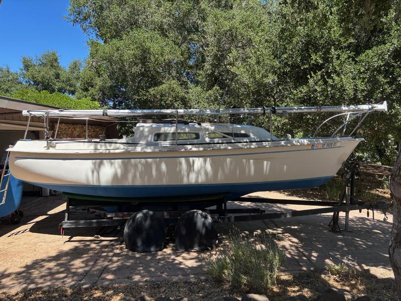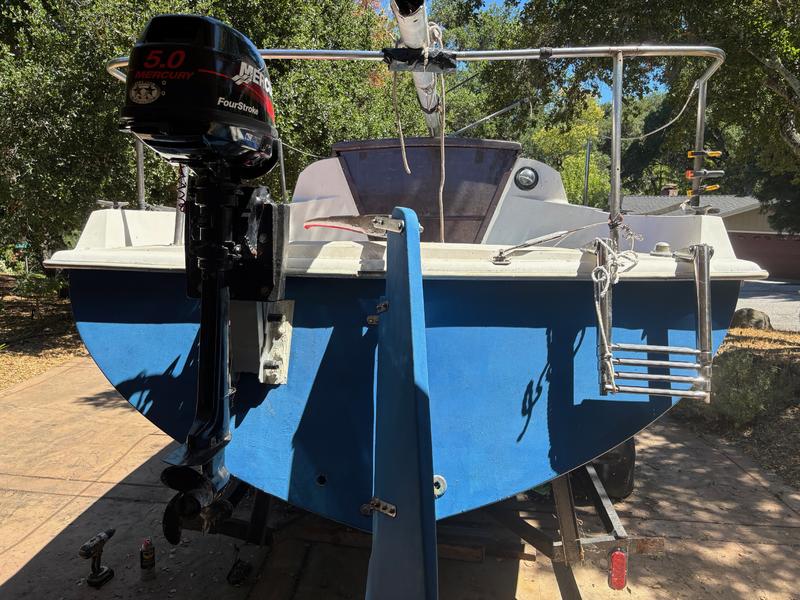 This classic beauty has been lovingly cared for over the years and is ready for the next adventure! Shallow keel makes for great stability and easy trailerability. The hull and rudder were recently painted with blue antifouling paint. All the outside wood parts were recently refinished. The motor was serviced last year. The trailer is fully functional with working brake lights and recent rust resistant paint. Includes 1 mainsail and 1 jib, both in good condition, and complete rigging. Clean title and up to date registration. Great boat for beginners and experienced sailors! |