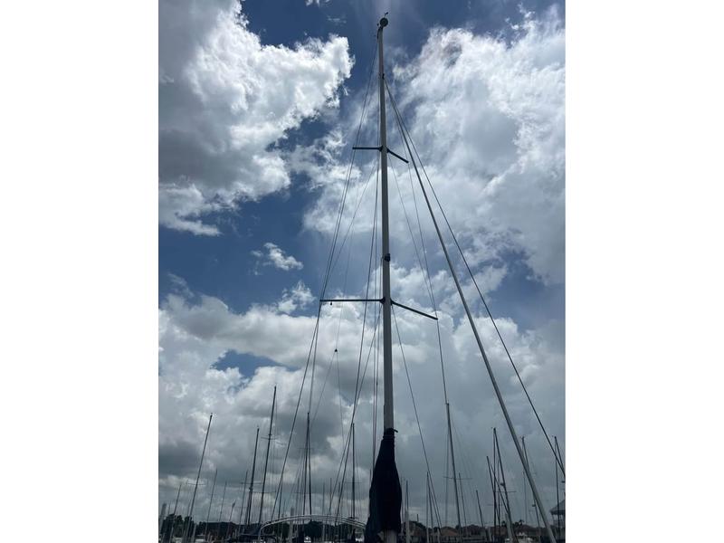 Stainless steel standing rigging with bronze and stainless-steel turnbuckles and fittings. Stainless steel bow and stern pulpits with double stainless-steel lifelines on stainless steel