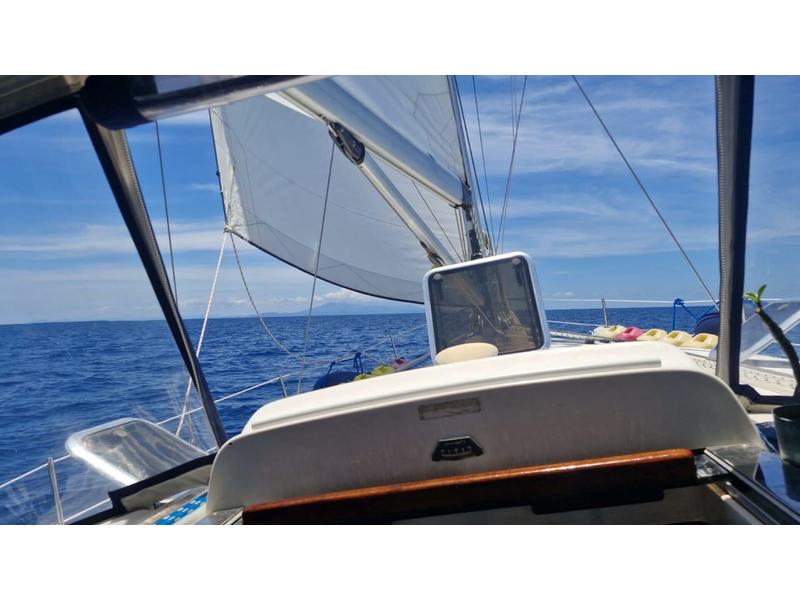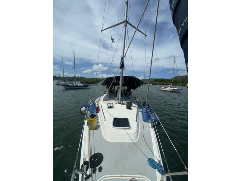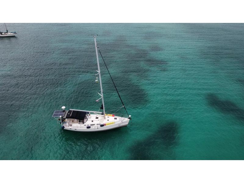 This 2004 Hunter 44 Aft Cockpit has been lovingly upgraded after three years of Caribbean cruising and is fully equipped for liveaboard comfort and self-sufficiency. With a 5 foot draft, she slips easily into protected anchorages and cruises efficiently at 7 knots while sipping fuel.