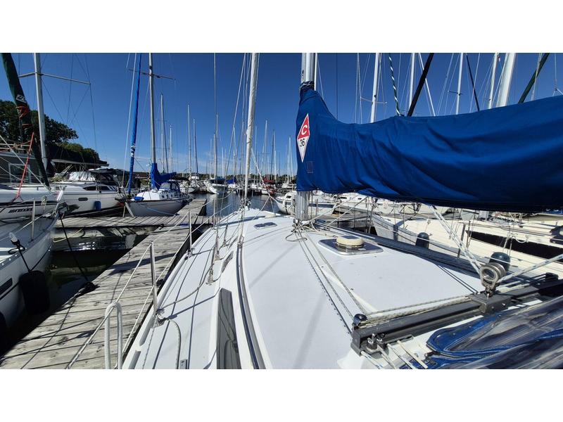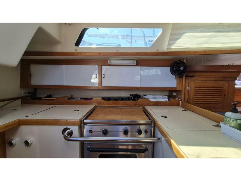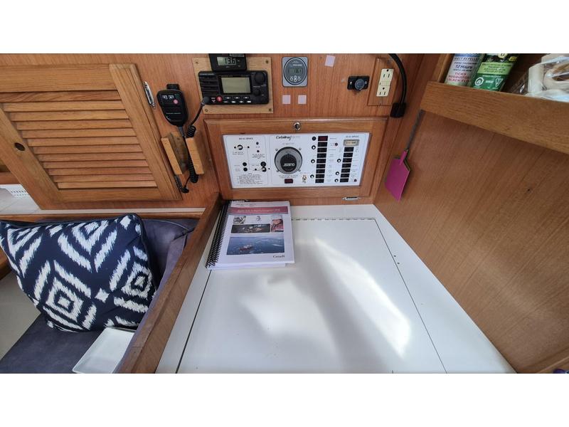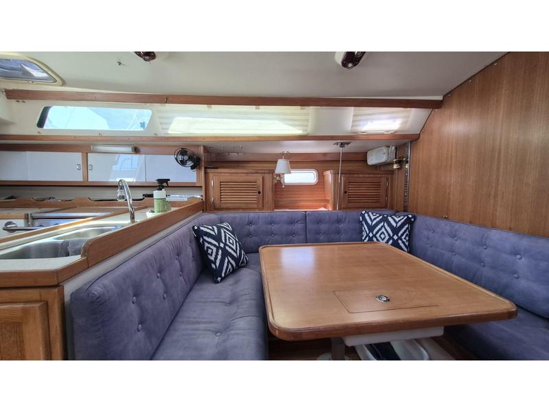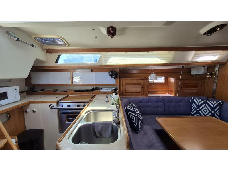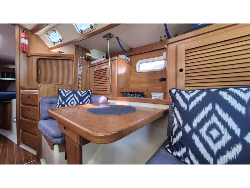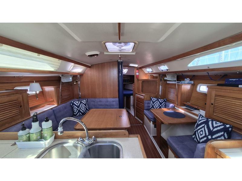 "Good To Go II" is a well-outfitted 1995 Catalina 36 MKII that's ready for life aboard or extended cruising. With a full suite of comfort features and a solid 35HP Universal diesel engine (3,000 hrs), she's a proven platform for coastal cruising and long voyages. Recent highlights include 880W of solar, full canvas enclosure, Ocean Marine davits, and a 10' dinghy with 9.9HP Mercury outboard and trailer. This is a perfect example of Catalina's legendary interiors; spacious, bright, smartly laid out, with a timeless modern feel. The U-shaped main salon seats six comfortably which doubles as a convertible double bed. The smart opposing armchairs increases entertaining possibilities which also that converts to a single berth. The galley features a gimballed propane stove/oven, deep dry locker, and ample storage with double stainless sinks. The forward stateroom includes a private entrance to the large head with an upgraded composting toilet, teak grid shower floor, and dual-entry design. The large aft berth offers excellent ventilation, natural light, and modular cushions for berth or garage use. A custom nav station with chart table and full drawer set adds utility and charm.