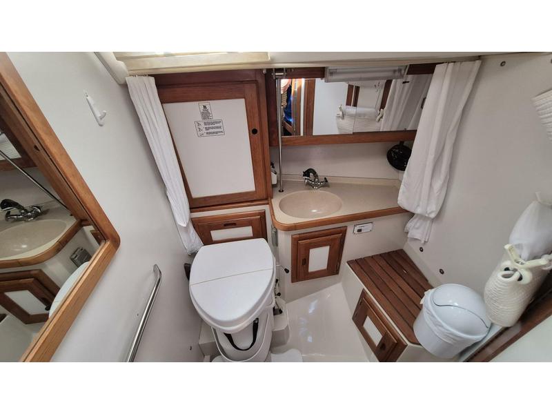 Up top, the cockpit offers generous seating, stern perch seats, a full enclosure with screens, walk-through transom, and a custom binnacle with integrated electronics pod. Lewmar self-tailing winches, boom vang, roller furling, and all lines led aft make single handled sailing simple. Whether youre liveaboard bound or weekend cruising, Good To Go II offers comfort, energy independence, and equipment most boats at this price point simply dont have. Simply put - you're good to go! |