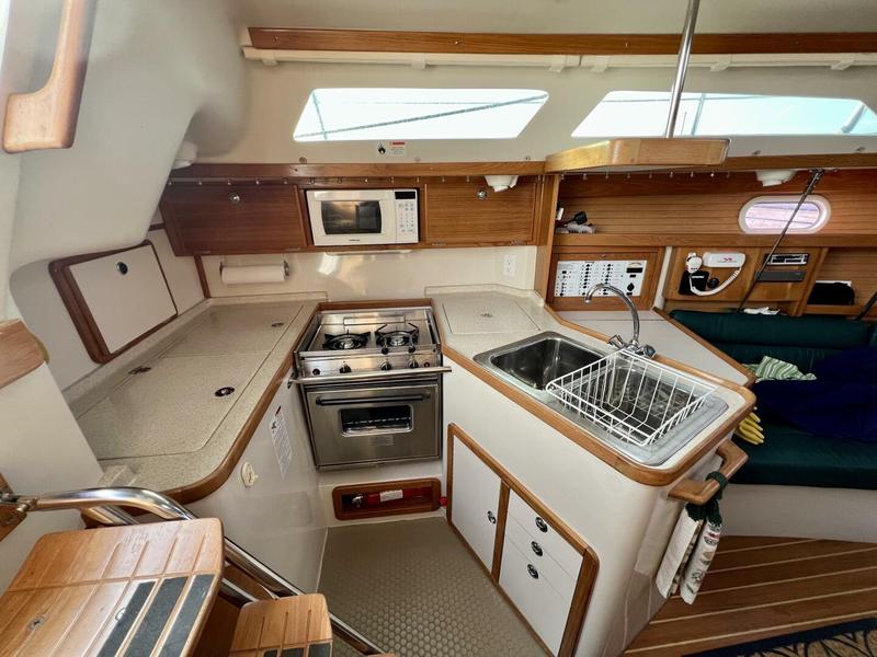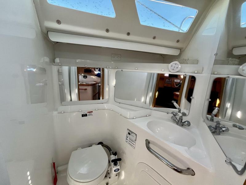 Electrical/ Equipment Chartplotter - Raymarine Axiom 9 Touchscreen*Upgraded Autopilot - Raymarine Evolution ACU 100, ST4000 Wheel Drive w/ Lewmar Folding 40" Wheel*Upgraded Autopilot Display - Raymarine P70 Color Display*Upgraded Primary Depth, Speed & Wind Display - Raymarine i70 Color Display - Helm*Upgraded Triducer - Depth, Speed & Temperature*Upgraded Secondary Depth, Speed & Wind Display - Raymarine i70 Color Display - Nav Station*Upgraded Depth Display - Raymarine ST60 VHF Radio - Standard Horizon - Nav Station VHF Radio - Standard Horizon Handheld - Helm Compass- Ritchie SP5C Cockpit Pedestal - Edison Helm Wheel - Lewmar, 40" Folding - Suede Wrapped Stainless Steel*Upgraded Engine Fuel Gauge - Helm Engine Voltmeter - Helm Egine Coolant Temperature Gauge - Helm Engine Tachometer w/ Hourmeter - Helm Windlass - Maxwell VW 500 w/ Foot Controls Motor Hoist - Manual - Cockpit Motor Mounting Plate - Cockpit Winch Handles (2) Solar Power - Sunpower 220W (110W x 2)*Upgraded Solar Controller - Victron Bluetooth MPPT 75 I 15*Upgraded Batteries - Rolls - 2x 12V 230 Amp Hours*Upgraded Battery Charger - Xantrex 40 Amp*Upgraded USB Charge Outlets (2) - Cockpit Nav Pod Cabin Lighting - LED*Upgraded Stereo - Clarion Marine M2170 w/ Cockpit Remote CD Changer - Clarion DC625 - 6 Disc Capacity Cockpit Speakers (2) Salon Speakers (2) Bilge Pump - Rule 500 gpm w/ Johnson Float Switch*Upgraded Propane Locker - 10 lb tank w/ Gauge