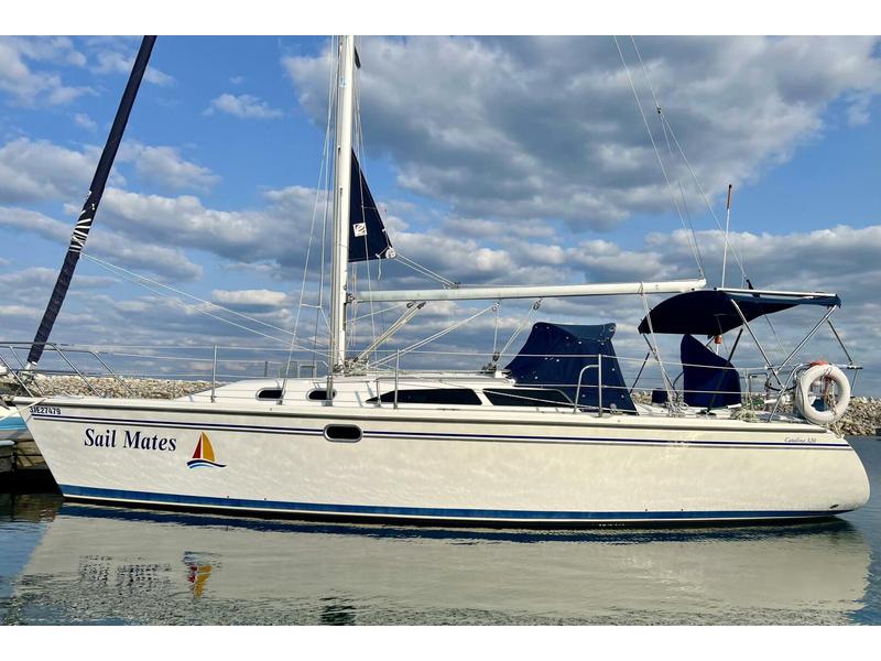 The masthead rig has new sails in 2022, with both furling genoa and in-mast furling mainsail. All lines run back to the cockpit with Lewmar self-tailing winches.Auxiliary power is a 27 hp inboard Yanmar diesel 3GM30F coupled with a 15 Profile feathering propeller (2021). The shoal draft wing keel draws 44 , making the boat ideal for cruising Georgian Bay.Electronics and navigation systems have been completely upgraded.Features include a Raymarine Axiom 9 chartplotter and multifunctional display (MFD) with Navionics maps, an i70 wind system & MFD with cockpit and in-cabin monitors, a triducer for depth, speed & temperature, a Raymarine Evolution Pilot System with a Lewmar folding wheel installed in 2025.There is a walk-through transom to swim platform and boarding ladder as well as a removable helm seat with cushion. The cockpit features a folding dining table as well as two elevated pulpit seats.The package includes fenders, dock lines, boat hook, shore power, a solar system that allows continuous anchoring without the use of a generator, and many other extras see listing description for full details. |