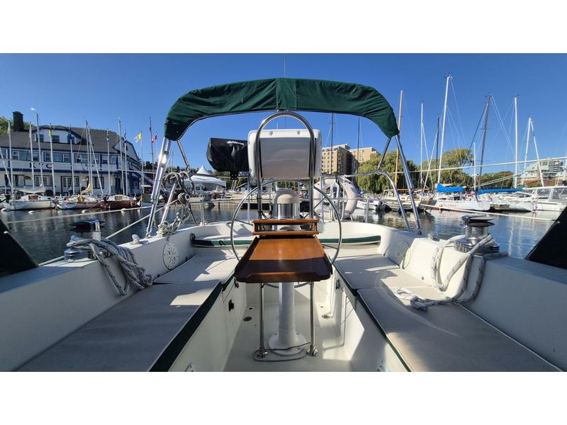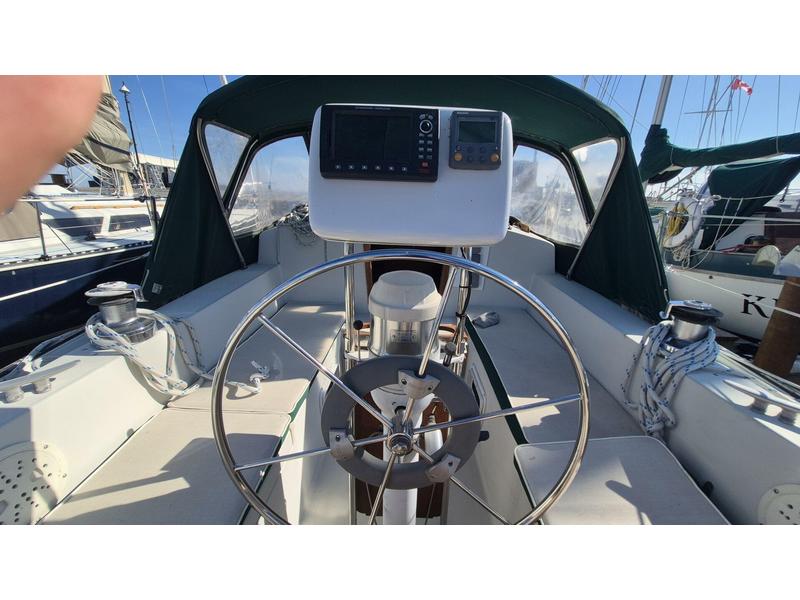 Cockpit & Electronics: Raymarine ST60 depth, speed, and wind instrumentation Raymarine Autopilot Standard Horizon GPS and chart-plotter Blue Solar Charger Controller - MPPT 75 15 Custom cockpit cushions Dickinson BBQ on rear rail Lewmar Self-tailing winches Dodger and Bimini |