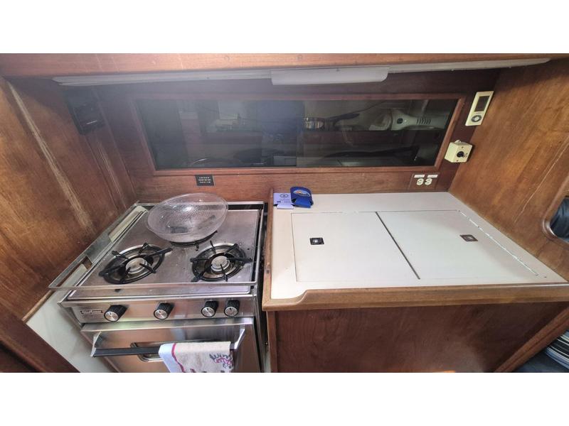 Galley: U-shaped galley with secure bracing on both tacks Stove: Gimballed Force Ten propane stove and oven Sink: stainless steel deep sink Large ice box with refrigeration Hot and cold pressurized water system