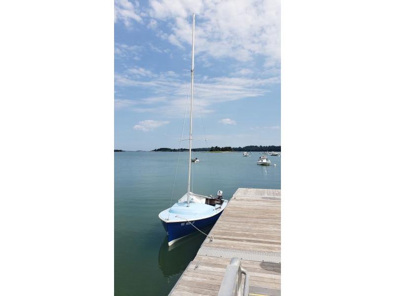 17 foot centerboard ODay 1965 Hold Yer Water. She is well-loved, we have had her since 2017. The boat body, sails, rigging and outboard motor are in good condition. The mast has a hinge for easy stepping, even if you are sailing solo. This boat is the perfect boat for a family, easy to sail, and comfortably sits four. All is included to sail immediately, including four life vests, an emergency kit, oar, and cover. The Honda 2.3 outboard is very reliable. Selling because we are moving inland without access to the ocean.