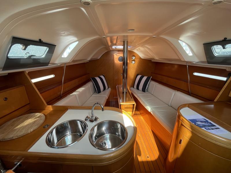 Reckoning is a well-kept Beneteau First 36s7! She has had a very caring owner for the past 18 years. The engine has been fully serviced and winterized every year by Crowley's Yacht Yard (CYY). Spring inspection is done every year before hitting the water. Batteries are new (2024). This boat is equipped with modern electronics including Raymarine Autopilot and Garmin Wind/Depth/Speed. Below deck she is very slick and clean. The galley offers a stainless steel gimble oven with a 2-burner stove. It also includes a newer Isotherm fridge & freezer. The teak and holly cabin sole are in excellent condition.