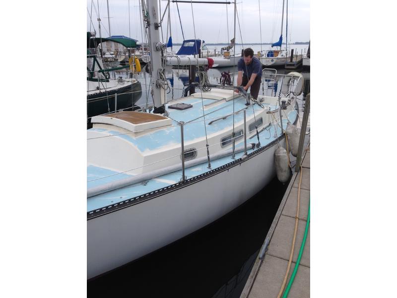 I acquired this sailboat in 2017. It had been sailed regularly before then. It has been kept in dry (roofed) storage since 2017. Even though this is an older boat there are no known concerns with this boat. The hull is rock solid and the deck seems to be fine. Everything needs, cleaned, painted, and gone over. There is a diesel smell down below but no leaks are apparent.