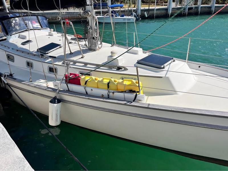 Her Mack Sails are all from within the last 5 years including a massive 150% Genoa that really makes her fly. Her dodger, bimini, and sail covers are all black Sunbrella and in great shape.