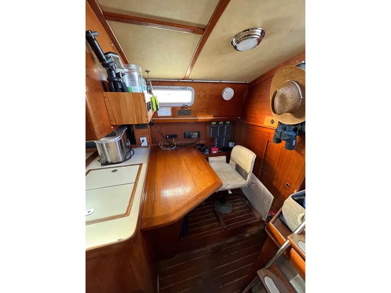 She has a Raymarine quadrant drive autopilot. She has a Raymarine radar and chartplotter system, as well as vesper AIS. She also has Furuno Fi70 wind, speed, and depth indicator.