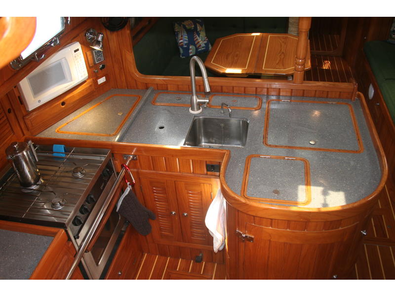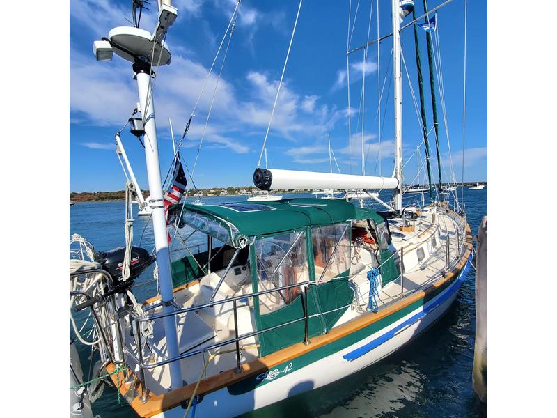 Mechanical Systems Yanmar 4JH3E, HP diesel engine, 2200 hrs serviced at 2000 hrs, filters and oil changed regularly 39 gal single s/s fuel tank with tank guage Dual Racor filters Reverso Engine oil change system Reverso Fuel polishing system 12V Lifeline AGM start battery new 2022 Cutlass bearing replaced 2023 Fixed prop on shaft Secondary 3 blade feathering prop as spare (serviced in 2024) Vetus Bow Thruster lower prop component replaced and tunnel reglassed 2024, motor serviced 2025 Electrical Systems 5 125ah Lifeline AGM house batteries 2022 1 155 watt semi flexible Sunpower solar panels 2025 2 145 watt semi flexible Sunpower solar panels 2022 SmartSolar MPPT Controller 100-50 MPPT control meter for Victron Victon Smart Battery Temp sensor 2000 watt inverter/charger Balmar 100 amp alternator Balmar MC612H Smart regulator Wema Tank gauges for fuel & water 6 110 GFCI outlets (2 in port lazarette 3 DC outlets (1 in cockpit instrument panel) Xantrex Link 10 power monitor Xantrex Freedom Marine 20, 2000 watt inverter w/Xantrex control panel Xantrex Freedom Marine 20 100 amp charger Paneltronics circuit breaker panel well labeled Cabin lights refitted with LED bulbs Galley lights on dimmer Sails and Rigging Doyle sails: full batten main, 120 Genoa, Staysail good condition, serviced annually Asymetrical Schaefer roller furling boom and vang Schaefer roller furlers for genoa and stay sails new 2025 Main sail running rigging new 2022 Genoa and staysail running rigging new 2024/25 3 Lewmar electric winches for main and genoa Whisker pole All lines led to cockpit for solo or shorthanded control Split backstay with SSB isolators Electronics Furuno NavNet TZ Touch 3 2022 Furuno NXT Doppler Radar 2022 Furuno F170 Color LCD instrument.data organizer at nav station 2022 ICOM VHF 2022 with command mic for helm Si-Tex Class B/SO AIS 2002 Furuno bronze thruhull digital depth, speed & temp sensor 2024 Predictwind Iridium Go and data port w/external antenna 2023 Raymarine ST60 wind display Raymarine ST 6001 Autopilot hydraulic drive serviced 2022 Raymarine S3G AST course computer rebuilt 2023 Yaesu FT-857 SSB HF/VHF/UHF Ritchie Compass compensated 2022 Safety Equipment ACR EPIRB 2022 Viking 4 person life raft serviced 2022 72 lb Rocna anchor w/200 ft 5/16 chain rode 44 lb Bruce anchor w/ 5/16 chain and 9/16 rode 45 lb CQR anchor available on request Dymeena lifelines Muir Cheeta HR2500 12 volt/manual capstan and gypsy w/foot pads & remote at helm 3 fire extinguishers 2022 MOB throw line Orion canister kit 2022 Bell (not mounted) All nav lights LED Emergency tiller No Strike Lightening Protection device w/hull grounding plates Primary bilge pump w/float switch Secondary bilge pump with high water alarm Delta Drogue Additional Equipment West Marine 3 person dinghy 2.5 hp Suzuki outboard Davits Stern mast with spotlight, antennas and outboard hoist Edson Stern outboard mount Teak and stainless swim ladder Green Sunbrella dodger with Isinglass, bimini, connector panel Green Sunbrella Full enclosure with isinglass panels Helm cover, leisure furl mainsail cover, handrail and winch covers Screened companionway doors for warm weather ventilation Cockpit table Specs Model:Cutter LOA: 46 6 LOD:42 LWL:32' Beam: 12 8 Draft: 5 3 (6 loaded) Cruising speed 6kts Bridge clearance 59' Sail area 909 sf SA/D 16.6 Bal/D:38.81 Comfort ratio 1.7 Cabin height 6'6" |
