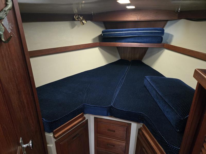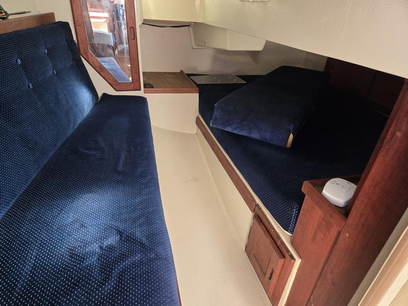 Newer additions/replacements include: -Jabsco Head -Macerator Pump -Ulman Main and Headsail -Raymarine Autohelm autopilot -Interior Cushions -Universal M25-XPB diesel engine (runs strong with regular service having been done) -Bottom paint 2022 _______________________________________ Running and Standing rigging in nice condition Heavy ground tackle including 200' 5/16 chain and Bruce anchor for comfortable sleeping on the hook. Electric windlass at bow Stern anchor with chain and rode. CNG stove/oven 12 Volt DC refrigerator Solar charger Pressure hot/cold water Cockpit cushions Stern rail seats Large deep cycle battery bank Battery charger / shore power cable Older Radar still operable